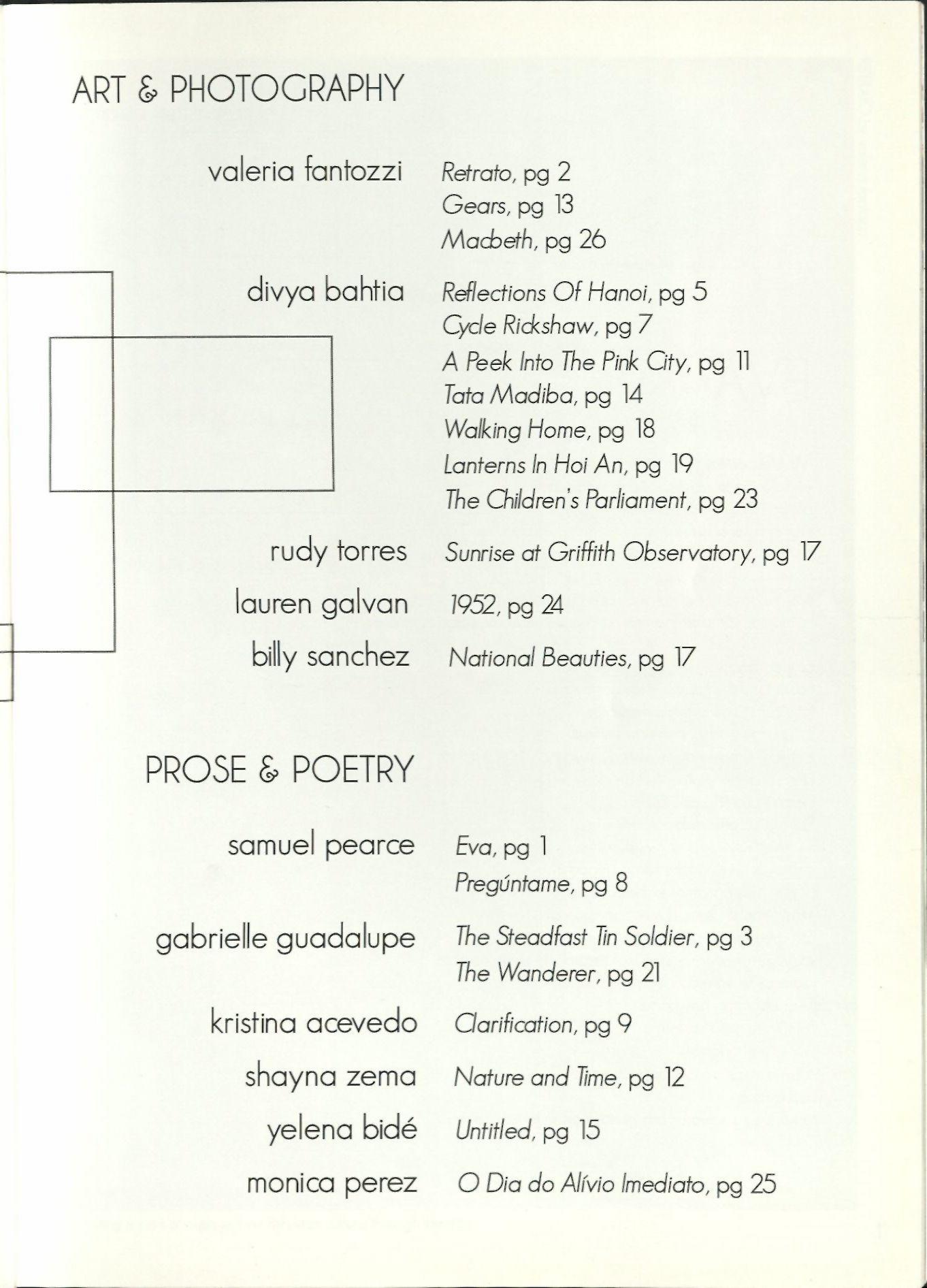 Valeria fantozzi divya bahtia rudy torres lauren galvan billy sanchez PROSE & POETRY samuel pearce