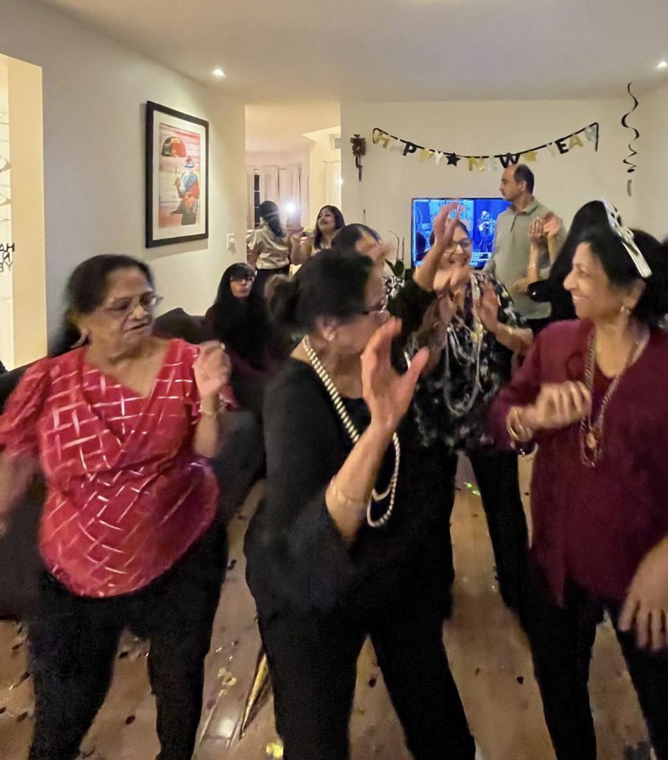 When we sat on the ground, everyone was on the same level, creating a sense of equality and connection that bridged generations. It was a space where stories, wisdom, and traditions were passed down, and our identities were strengthened. I have vivid memories of learning to roll rotis with my grandmother while she shared her experiences of immigrating to the U.S. I remember my grandparents teaching me how to do rangoli designs, my aunts teaching us how to do garba, my grandpa lighting sparklers with us during Diwali, and my great-grandmother telling me stories of her childhood in India, my parents helping us with schoolwork, my cousin and I teaching the elderly's English and how to read. It was a space where wisdom flowed freely, and through sitting together, we shared conversations, debates, and stories that united us all.