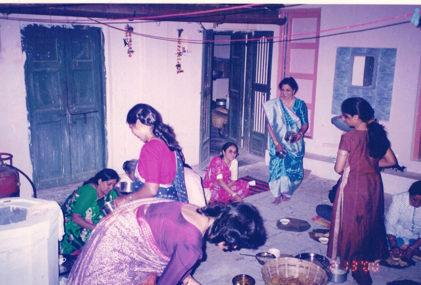 This open space holds many fond memories of my family. The floor was our venue; it hosted multiple weddings across generations, baby showers, birthday celebrations, and graduation parties. The floor was our temple, where we held many religious prayer ceremonies. The floor was our dining table; every night, we gathered on the floor to eat together. The floor was our playground, where my cousins and I spent most of our time playing. The floor was our bedroom; with just padding on the ground to sleep on. The floor was our office/workspace; my generation did schoolwork, the generation above did college and office work, my grandparents read the newspaper, and my great-grandparents relaxed, sharing stories and enjoying our company. The floor was everything to us.