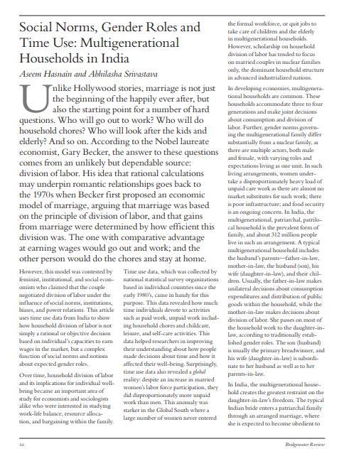 “Social Norms: Gender Roles and Time Use; Multigenerational Households in India” by Aseem Hasnain and Abilasha Srivastava