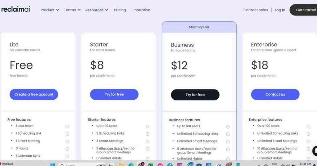 Reclaim AI offers its users choices for the start free plan with limited features and paid plans with additional features also.