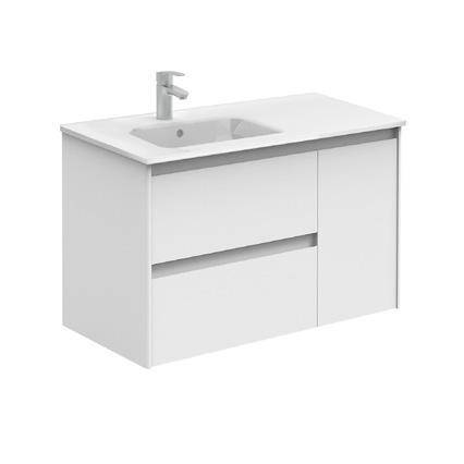 With a wide array of possibilities for your bathroom, FREYA is distinguished by its expansive colour range and superior design. Featuring elegant lines and generous wash space with a Solid Surface resin basin. Its inset metal angular handle delivers a sleek and subtle fnish to your vanity unit. With FREYA you have the fexibility to achieve an end result characterised by high levels of customisation. FREYA’s diverse range offers something for everyone, allowing you to create a bathroom with a unique look.