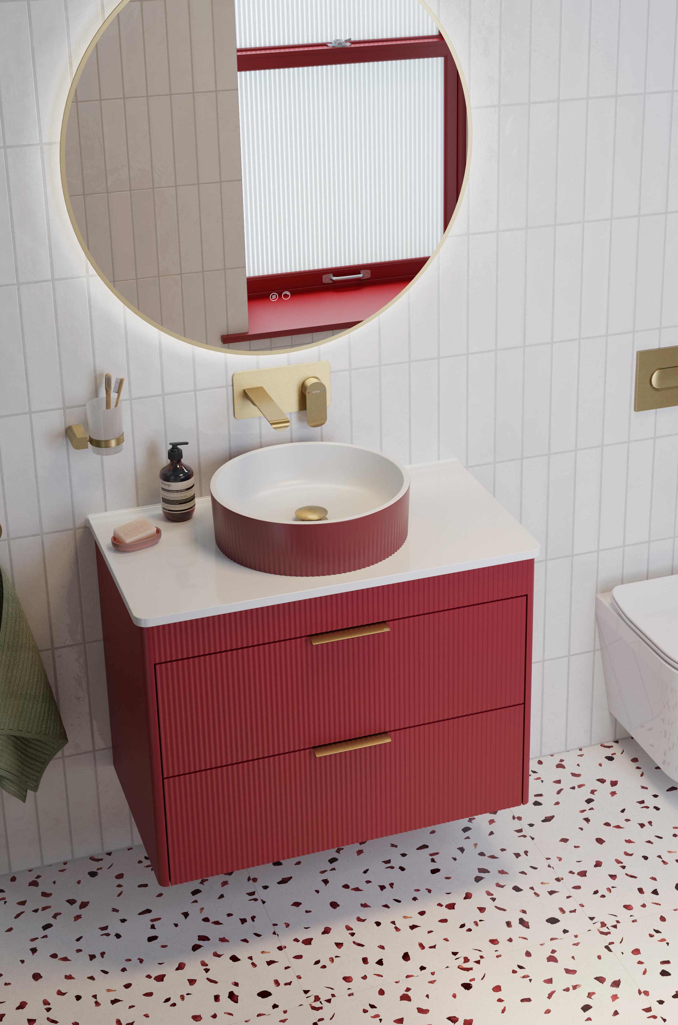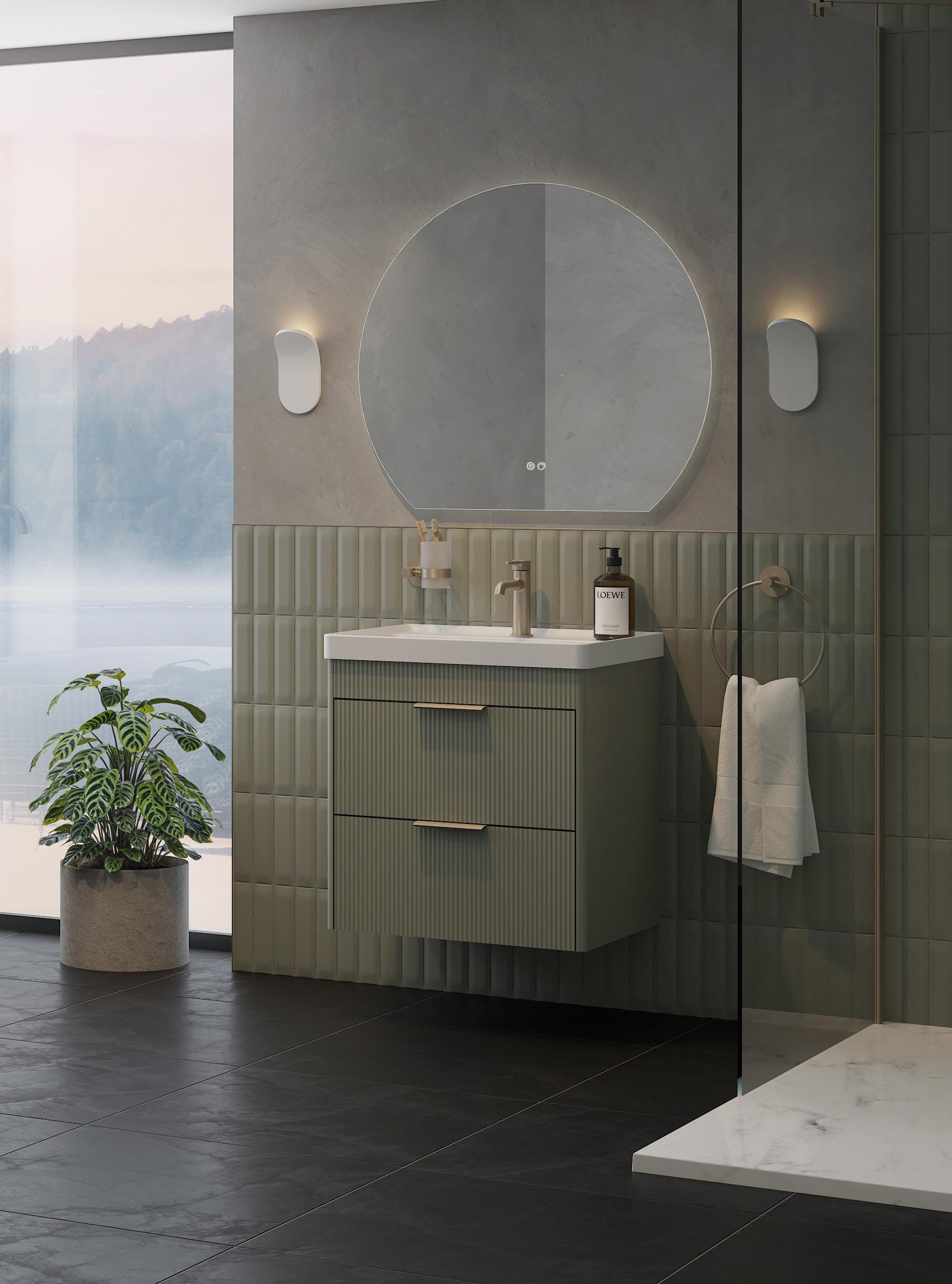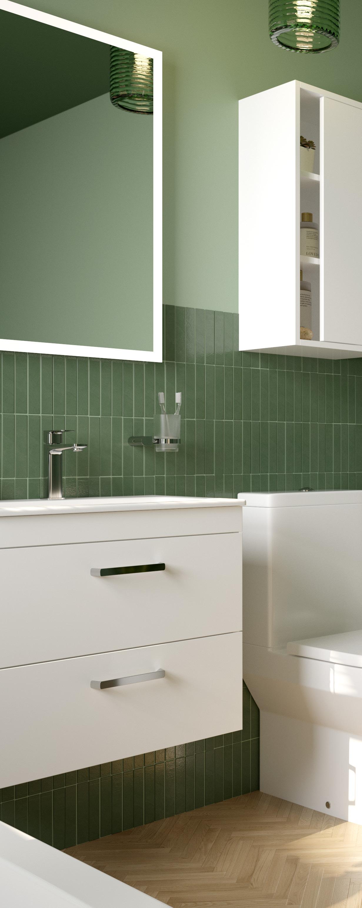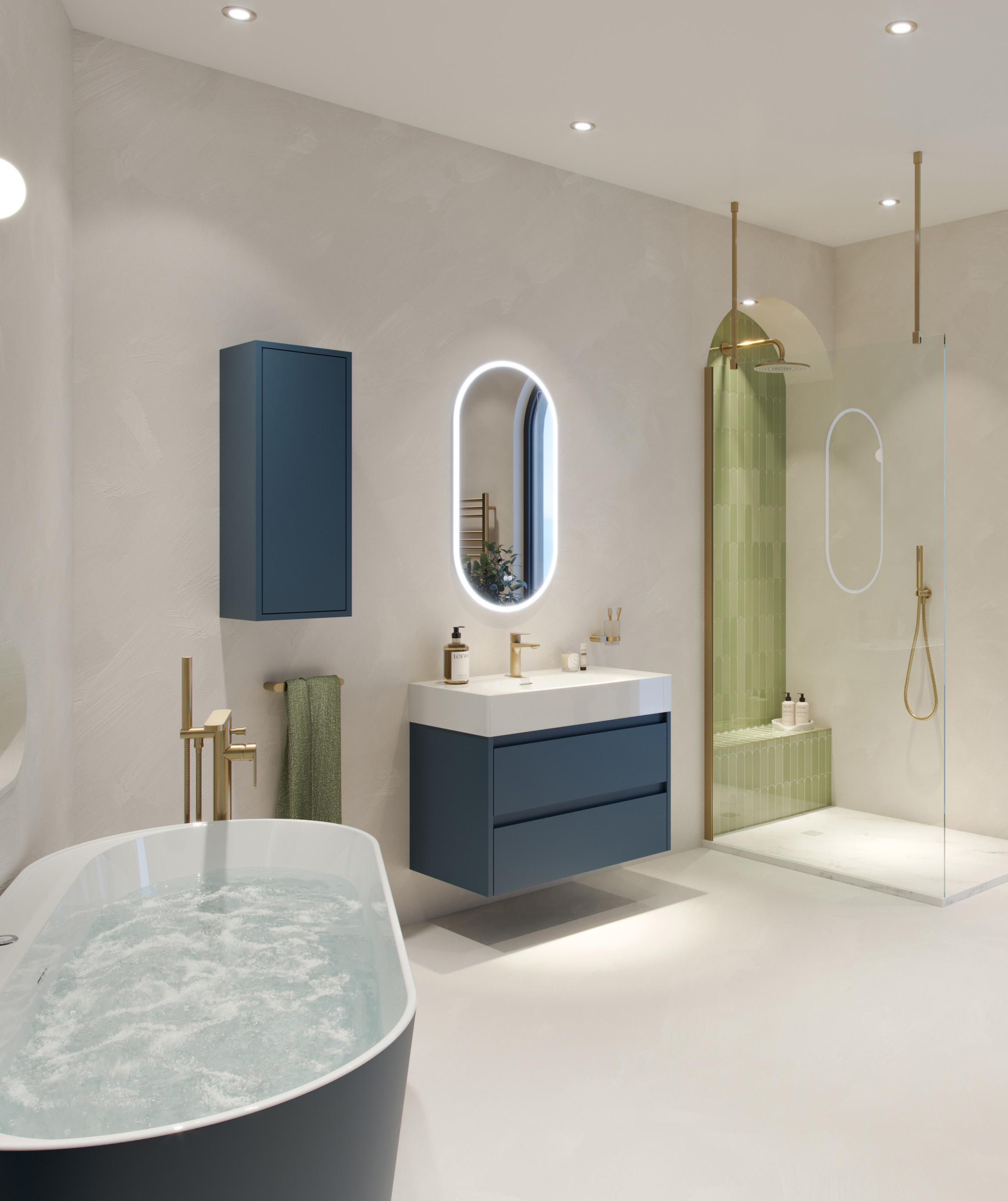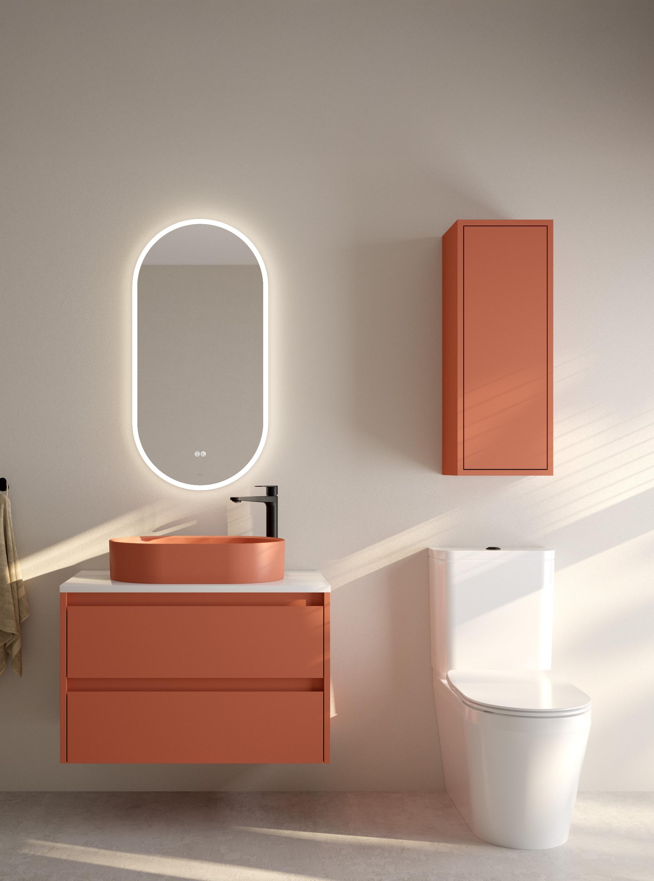 Available in 60cm and 80cm widths, the 18mm lacquered MDF cabinet arrives in the same five harmonised Living hues: Gloss White, Metro Blaze, Parkland, City Stone and Riverside. Sleek, handle free fronts keep the pill shaped ceramics centre stage while echoing their calm fluidity. With PULSE, storage doesn’t just follow the beat of life, it conducts it, delivering silent soft close ease and uncluttered beauty that resonates through the entire bathroom.
