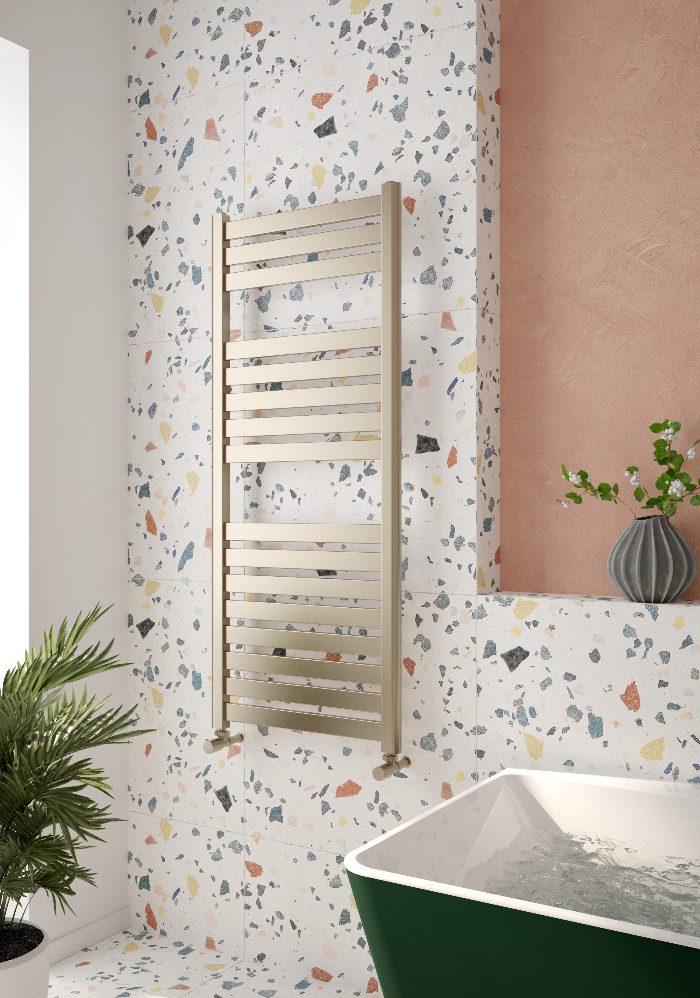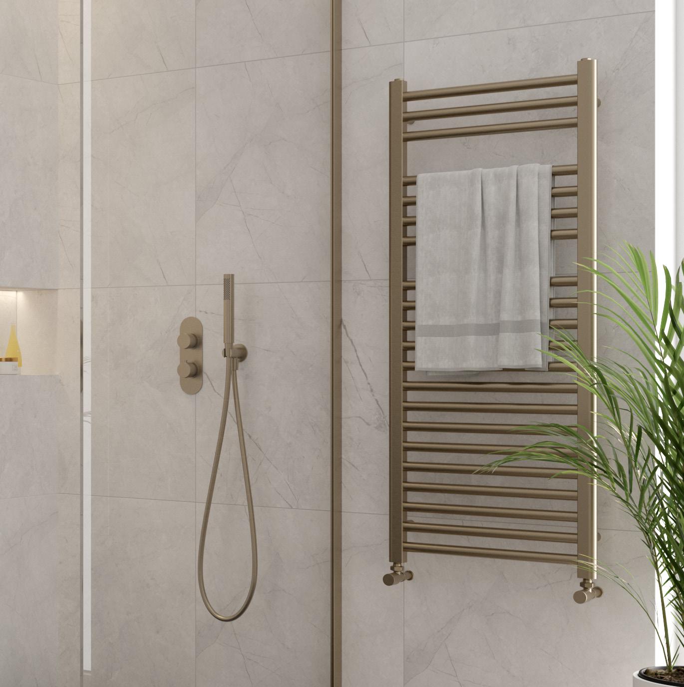 Additionally, explore the use of contrasting colours or complementary colour schemes to add visual interest to your bathroom. For instance, pairing soft blues with warm wooden accents can create a striking and modern aesthetic. Pay attention to the colours of fixtures and accessories as well. Consider the finishes of taps, accessories and radiators and how they interact with your chosen palette.