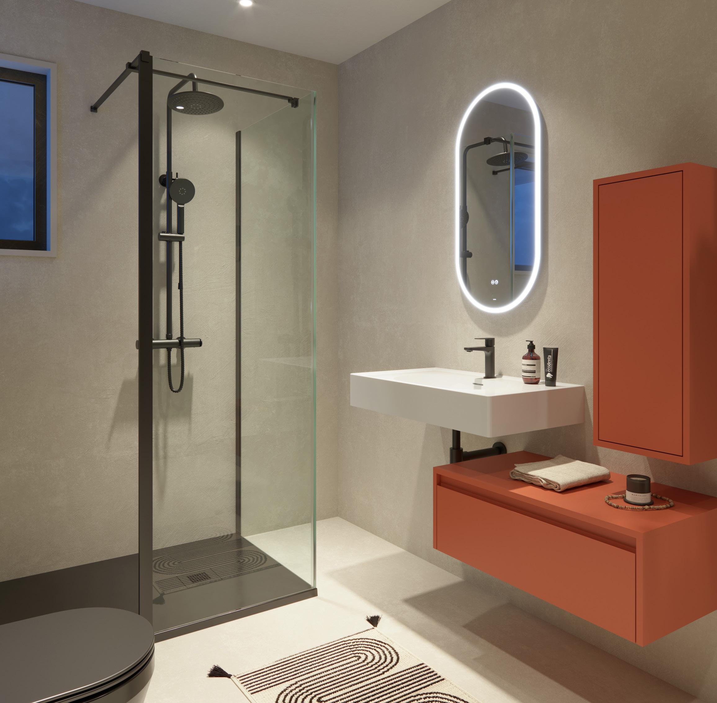 APEX complements the collection’s pill theme without imitation, adding architectural tension that frames, rather than competes with, its curved counterparts. APEX is where form, function and flow converge, design at its most integrated.
