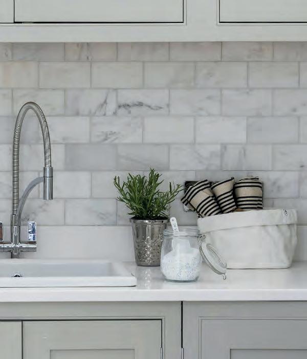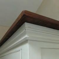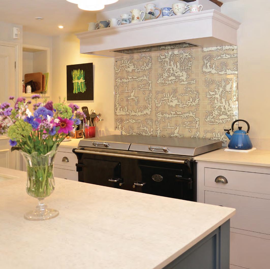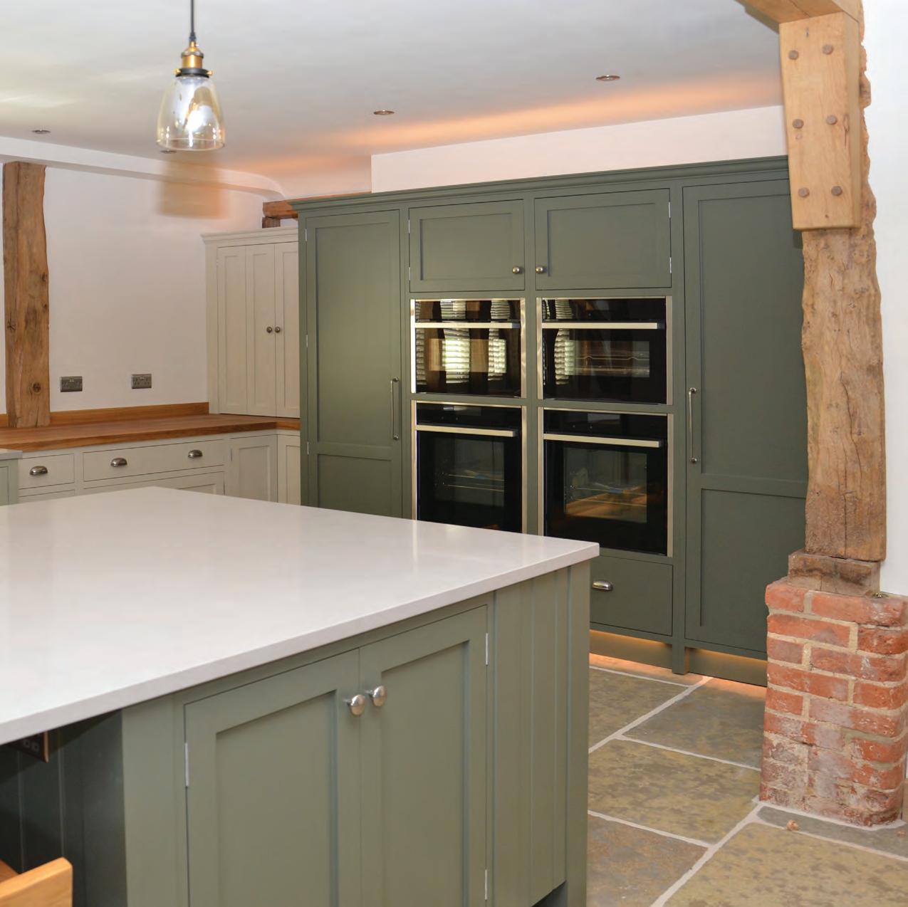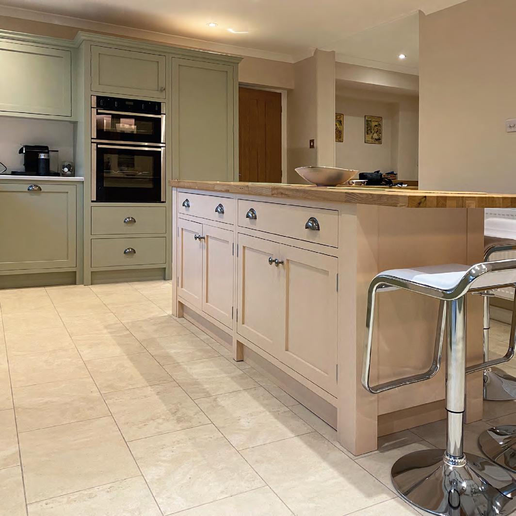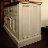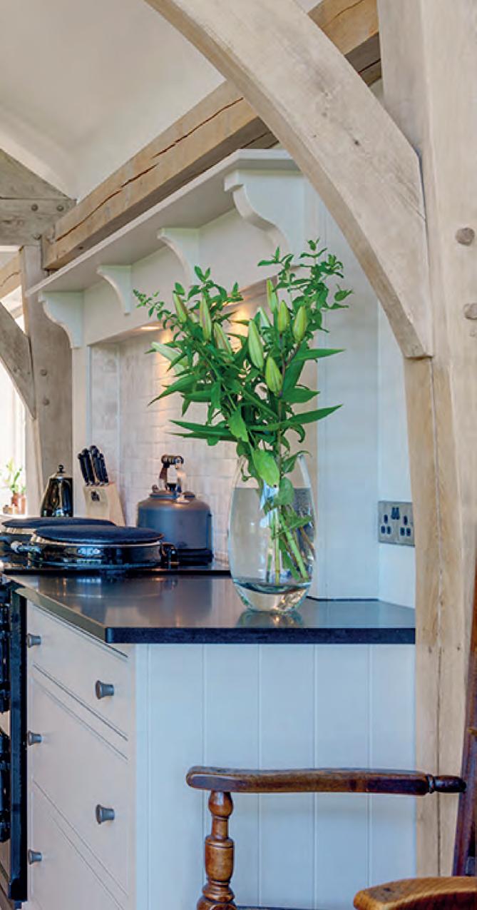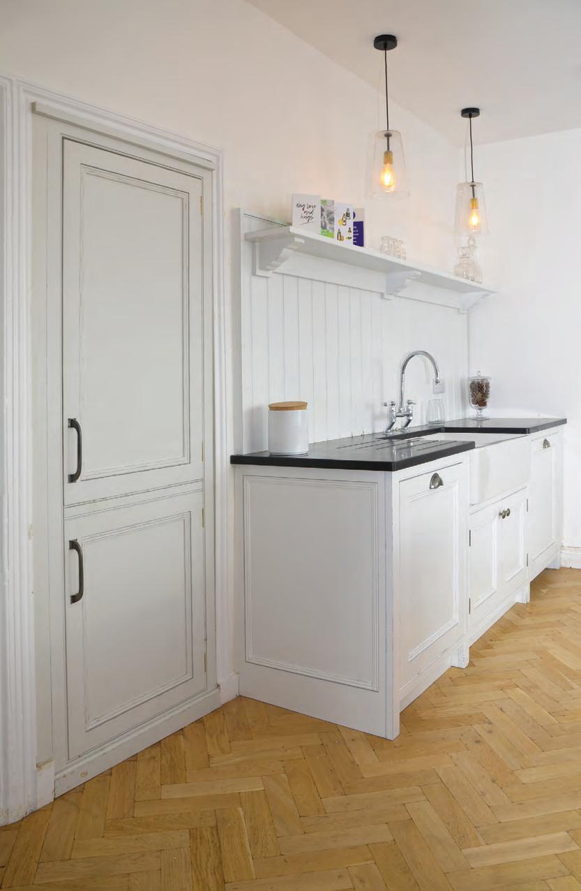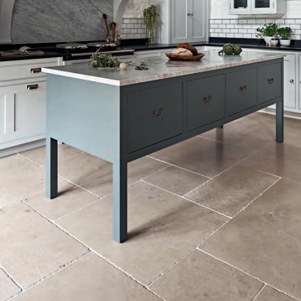 With its vaulted brick ceilings, stone archways, lime-washed walls and stone floor, we had to be sympathetic to its beauti ful layout. Distressed, freestanding cabinets were the obvious choice.