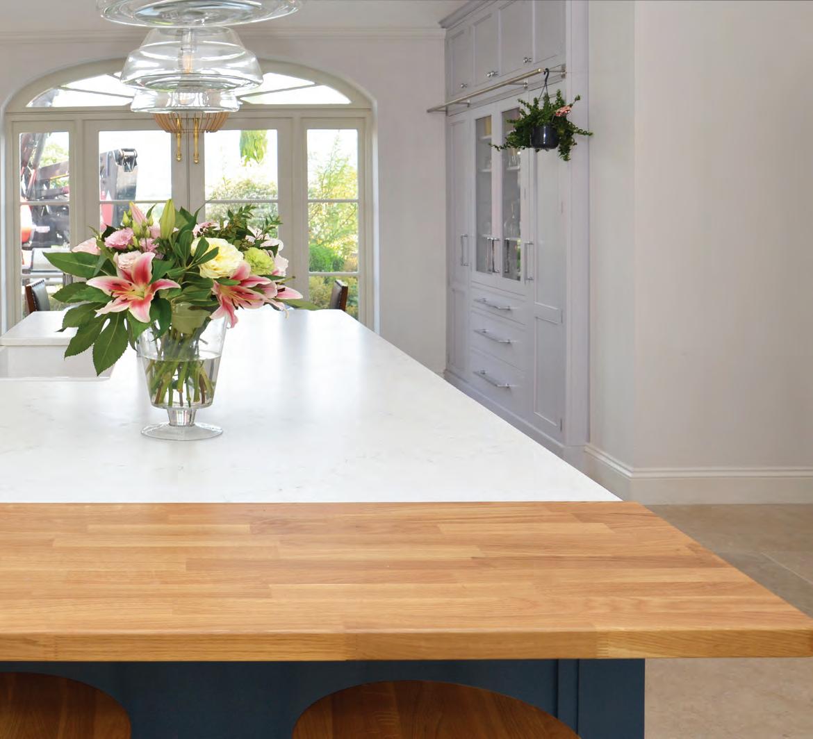 This is a real food-lover’s kitchen. The island unit consists of an untreated butcher’s block oak worktop for chopping and cutting. There’s also a granite worktop for rolling pastry and an under-mounted food preparation sink located close by.