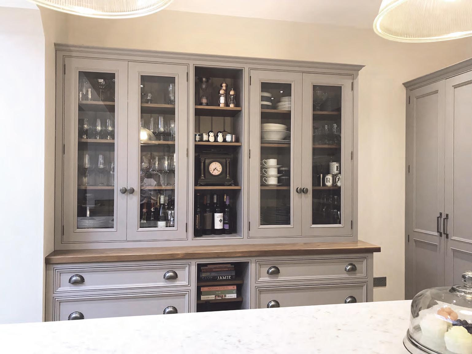 Working closely with contractors, we supplied their kitchen, laundry room, walk-in pantry, boot room and library. Every piece of furniture is substantial. For example, the island is over 4 metres long, the longest we have ever created. It has an 80mm thick solid oak worktop. The dresser is a work of art, skilfully produced by our highly experienced joiners.