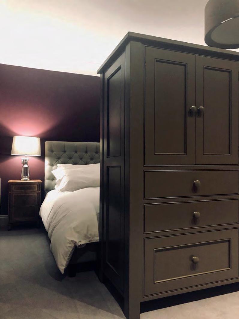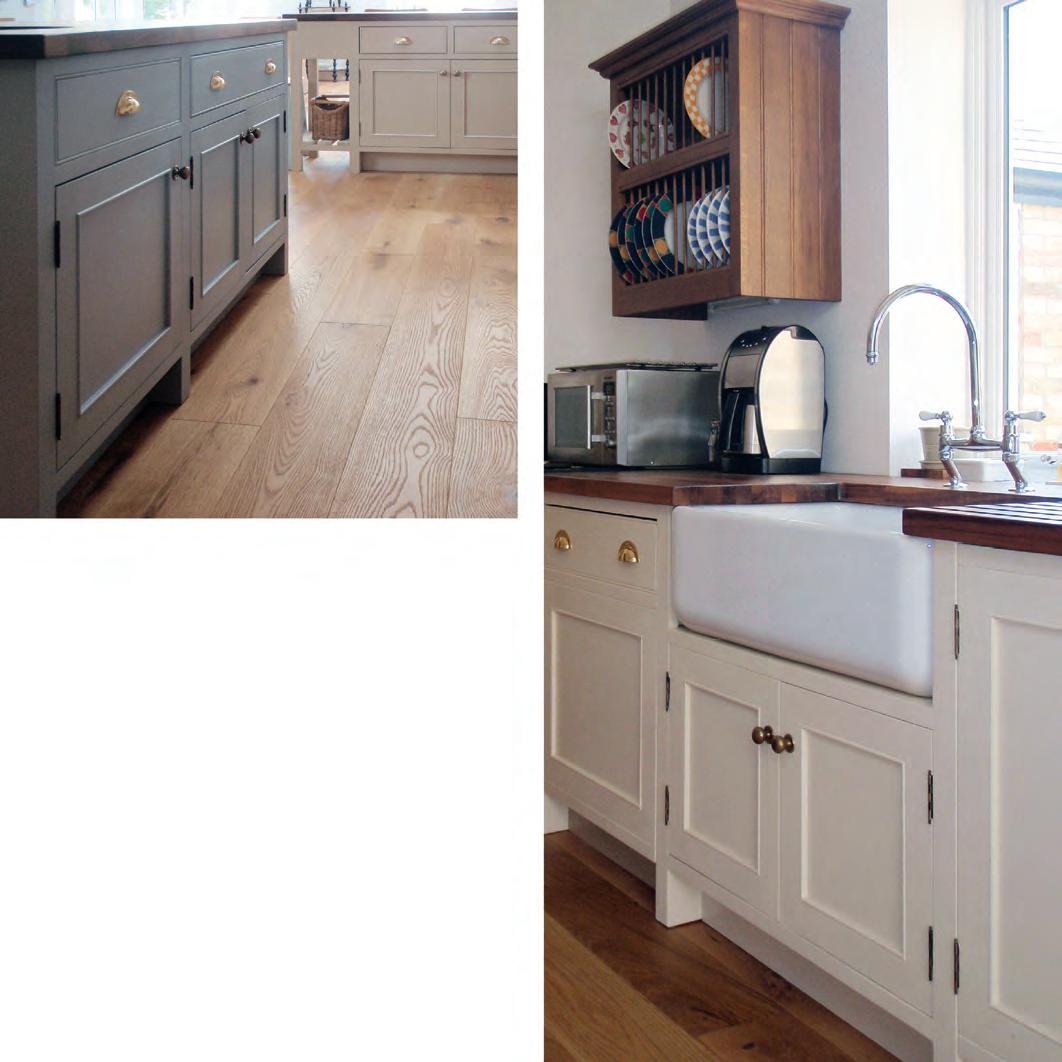 There are three different Farrow & Ball paint colours. Dark oak finishes emphasise the freestanding look.