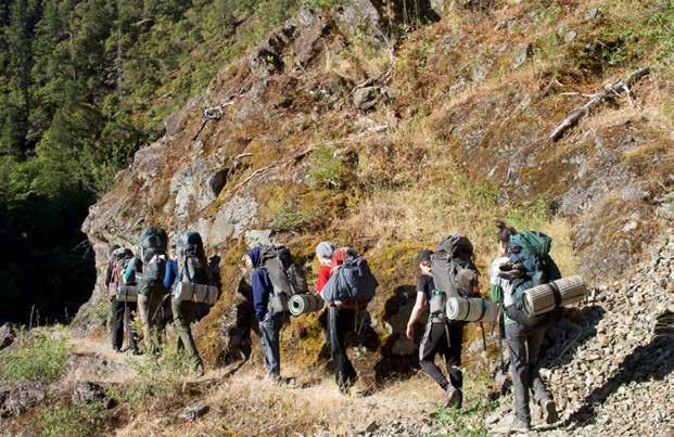 floor of my classroom, for all to see. Then I doled out sweat-stained backpacks, the smell of campfire smoke and musty hiking socks inundating the room. This is what I call the yard sale. Making a couple quick rounds, I helped eliminate unnecessary items—excess clothes, junk food, a chemistry textbook, various forms of technology—and echoed one sentiment repeatedly: “Take only what you need to survive.”