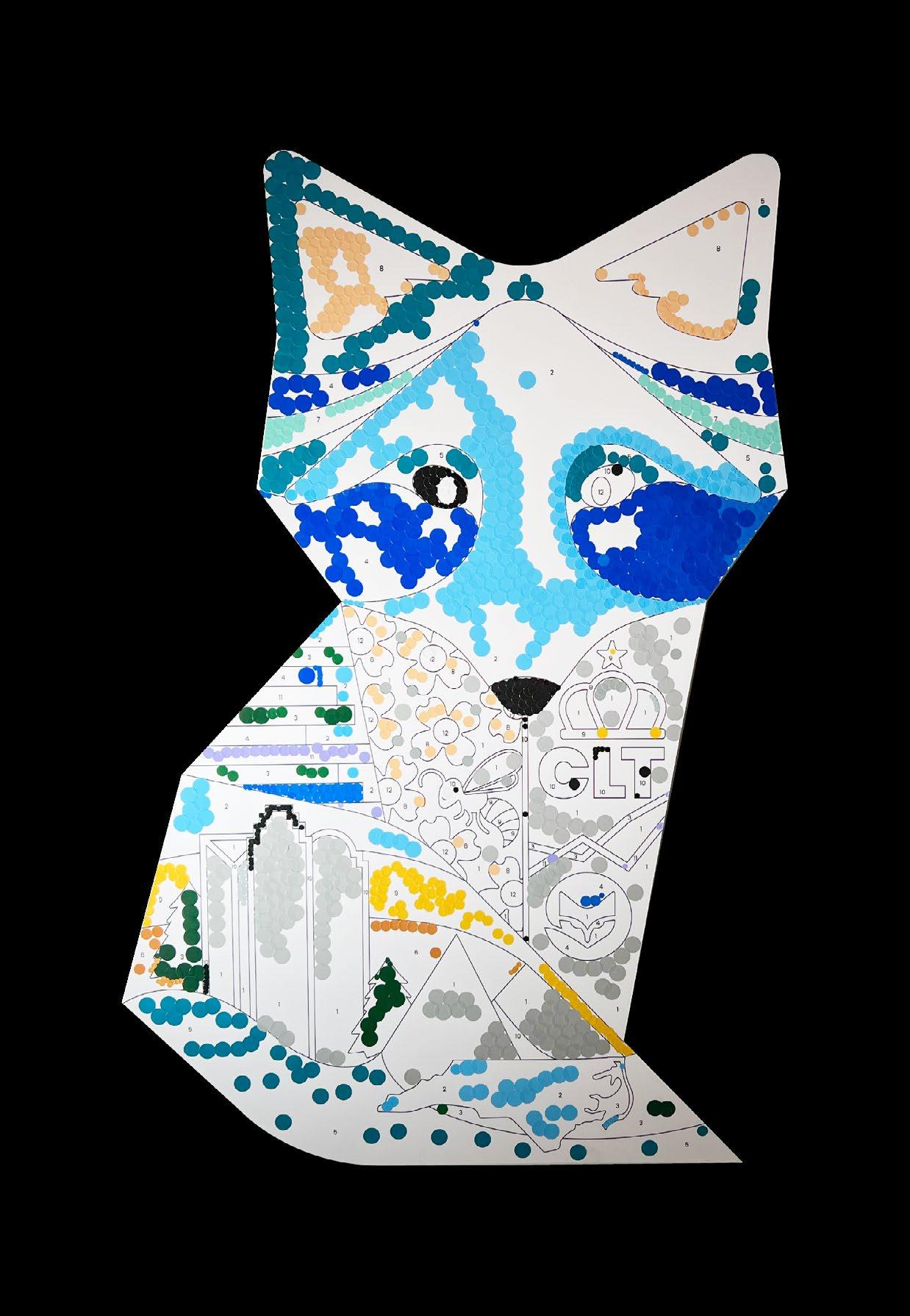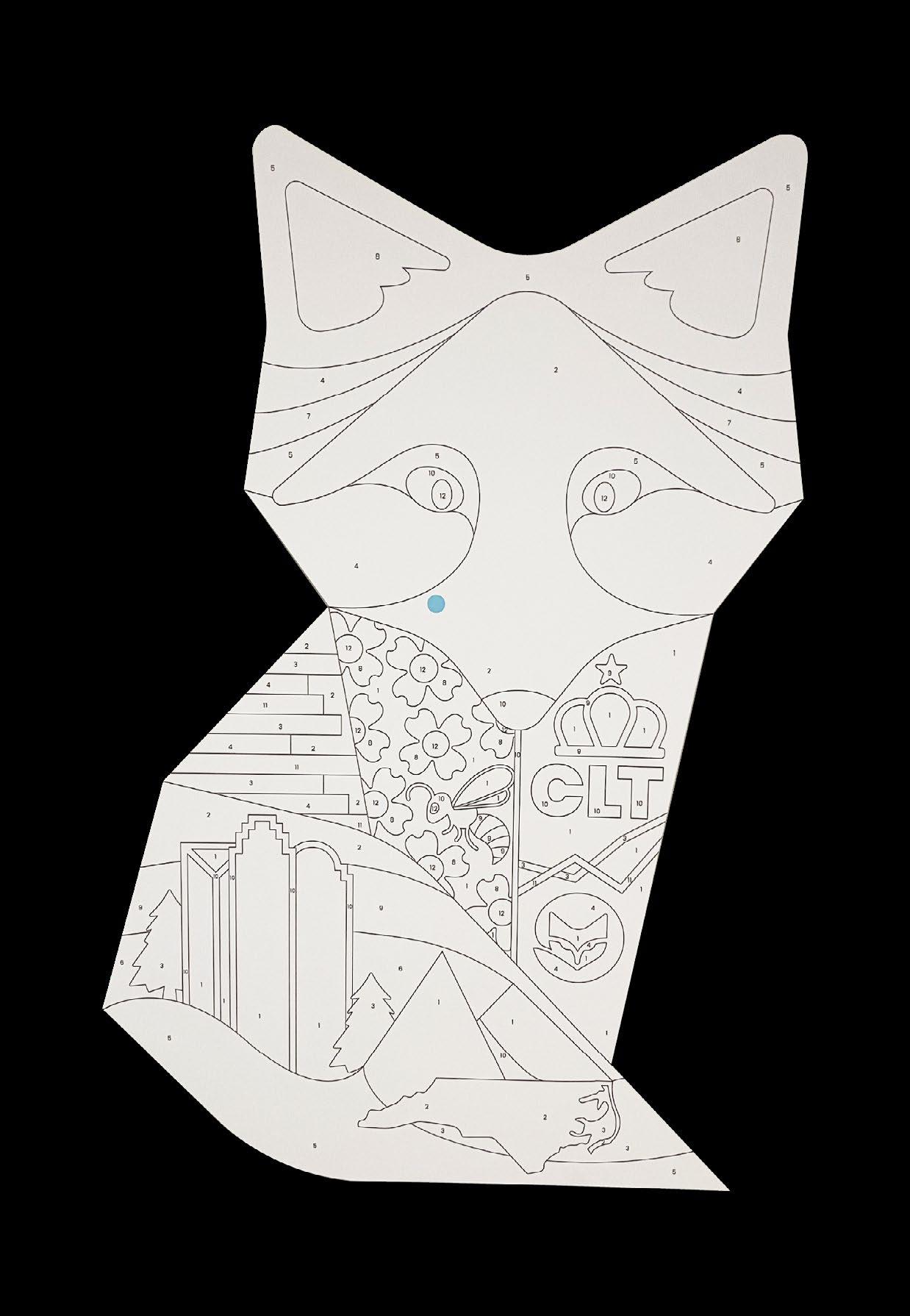 My role was to create the art itself, decide the colored sticker dots that would be used, and ensure the whole project would work. I decided on the fox outline, then created the coloring book style art with different elements that represented Charlotte, North Carolina (the host) along with some elements that represented Zartico's data product. Each area had a number in it that referenced one color of sticker dot in a variety of sizes. Attendees took time together during breaks to apply stickers and check in on the progress.