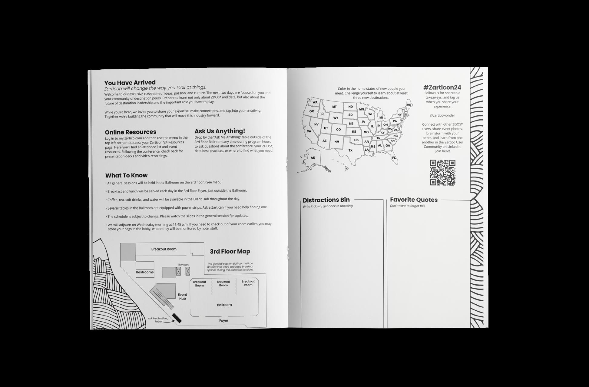 Zarticon is a data product user conference hosted by Zartico and aimed at supporting their clients who are all in the Destination Marketing or tourism industry. 2023 was the inaugural event and was hosted in Tampa, Florida. The goal of the conference was to create community and educate the attendees on the ZDOS product while highlighting the destination of Tampa in its branding. My role as lead creative director and designer was to decide on a design direction and execute the wide array of creative projects that are required when hosting an event.