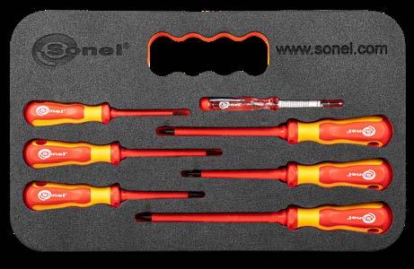 Sonel screwdriver has a rugged shaft and handle connection. Ergonomically designed handle means powerful fatigue-free use and optimum torque transfer. Specially selected materials ensure excellent shock resistance of the handle. High-precision tips compatible with DIN EN ISO guarantee perfect screw fit.
