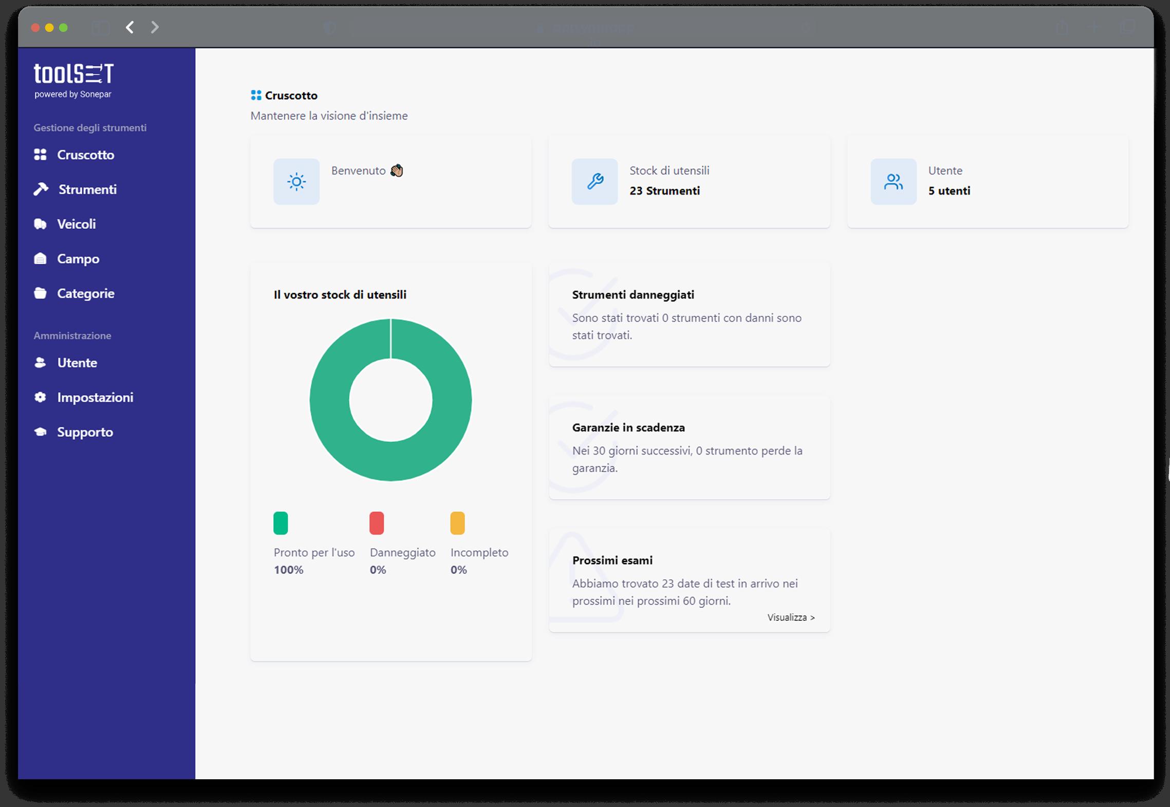 E la nuova piattaforma toolSET, che permette di avere sempre sotto controllo utensili e veicoli.