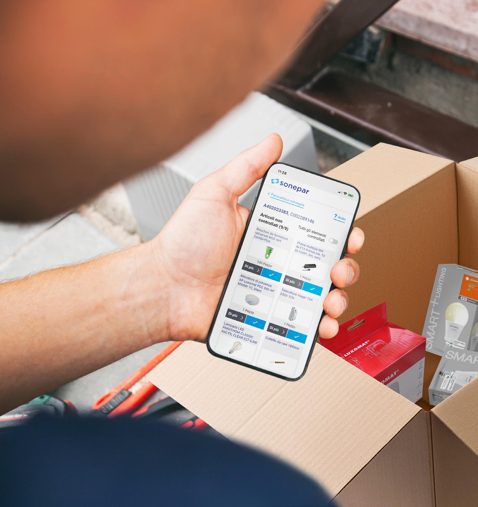 Ora che la mancanza di personale e le difficoltà di approvvigionamento complicano un po’ tutto, Sonepar è al vostro fianco per semplificare il lavoro di tutti i giorni. È con grande soddisfazione che annuncio il lancio di due nuovi servizi digitali. Il controllo delle merci fornite, che si può finalmente fare con pochi clic, direttamente dall’app Sonepar.