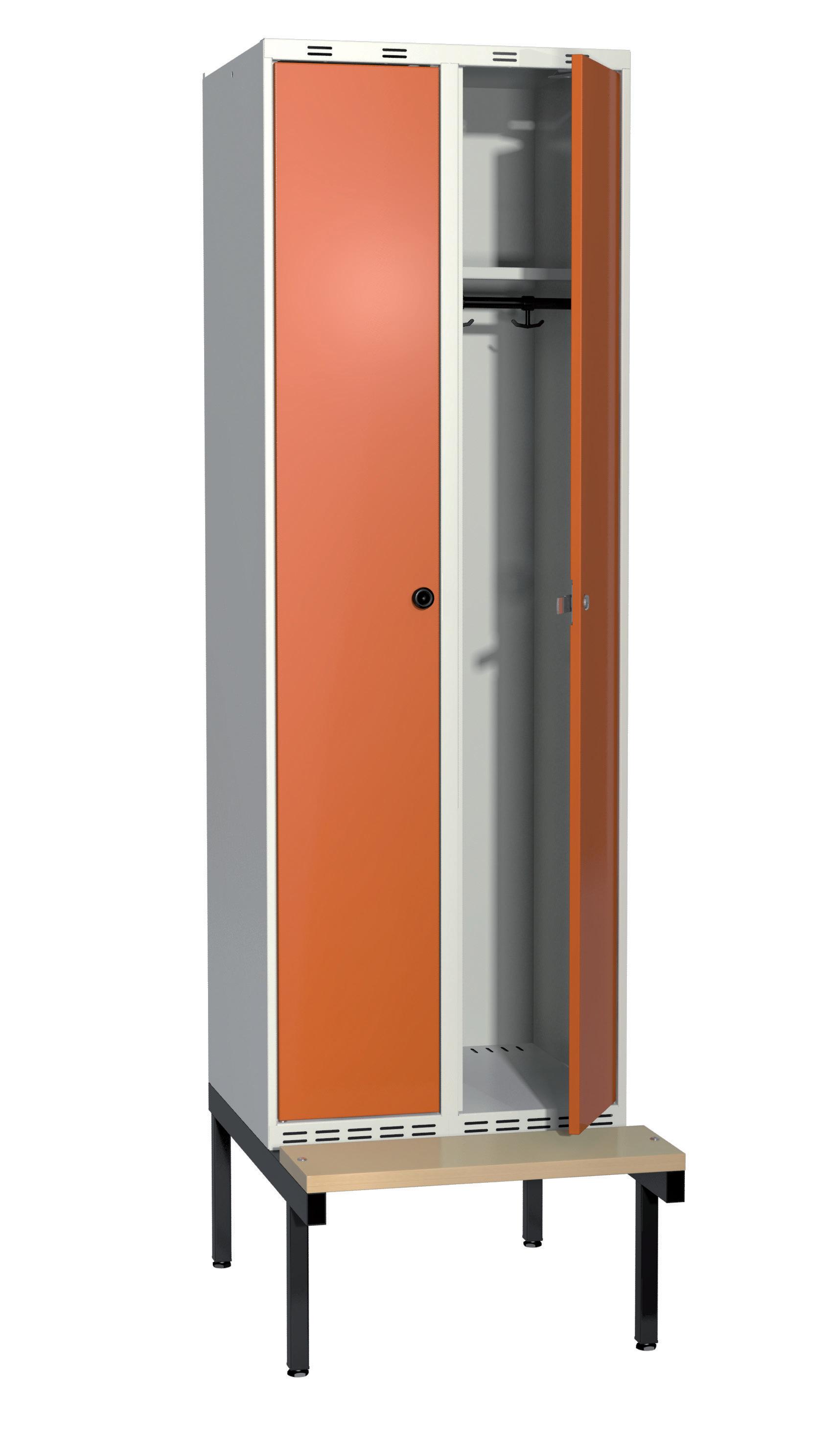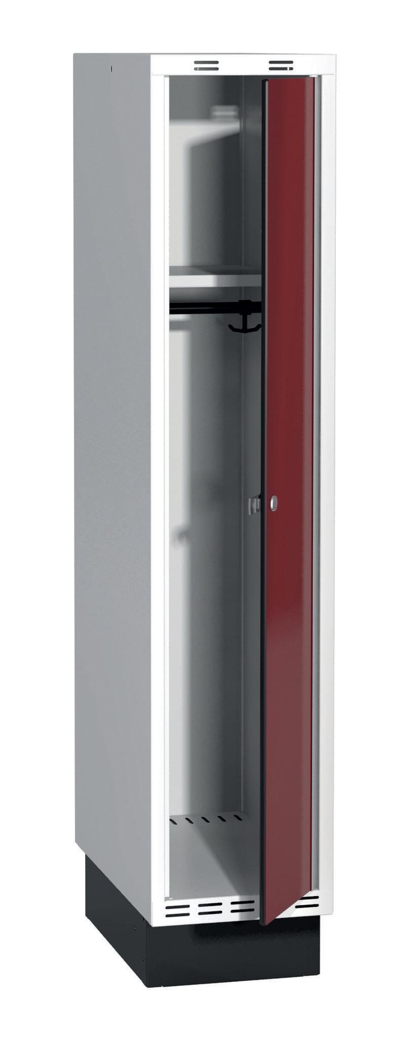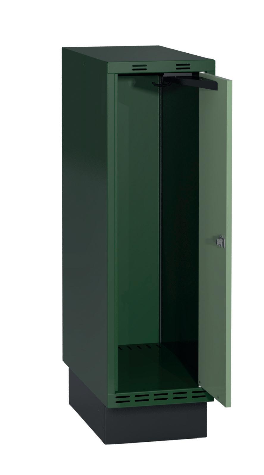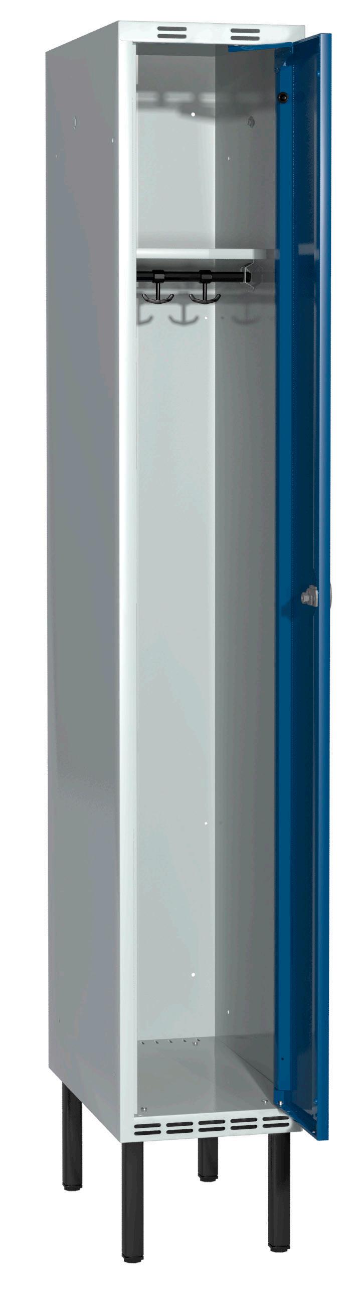 På olika arbetsplatser används olika sorters arbetskläder. Önskemålen om inredningsalternativ i klädskåpen skiftar efter behov. Vissa arbetar utomhus och vill kunna hänga in blöta arbetskläder för torkning över natten. Andra ser mer klädskåpet som en garderob för de egna ytterkläderna under arbetsdagen. Vi har därför ett mycket brett sortiment av både klädskåp och tillbehör och vi vågar lova att du kommer att hitta ett skåp som passar just dina behov. Gemensamt för alla skåpmodeller är den stabila, helsvetsade stålstommen. Du väljer sedan själv underrede, dörrtyp, färg, låsning, tillbehör och ventilationsalternativ.