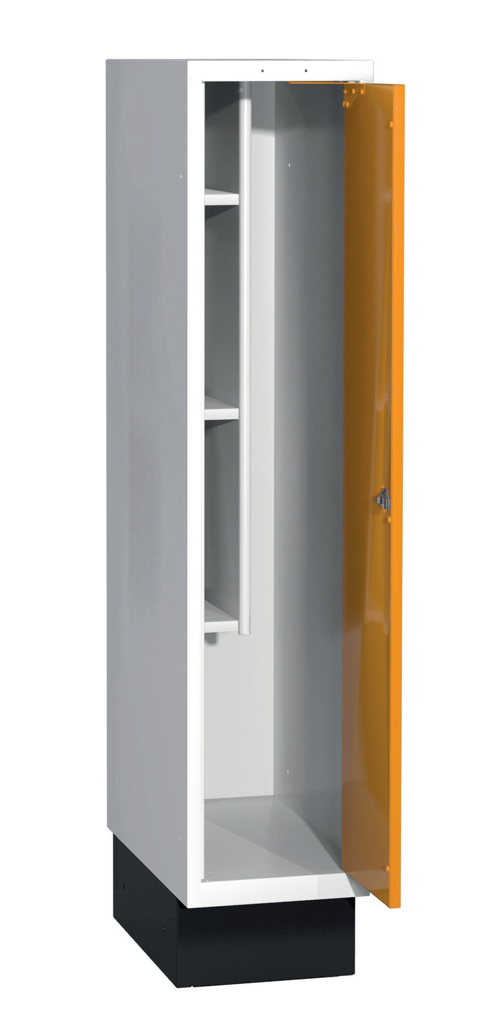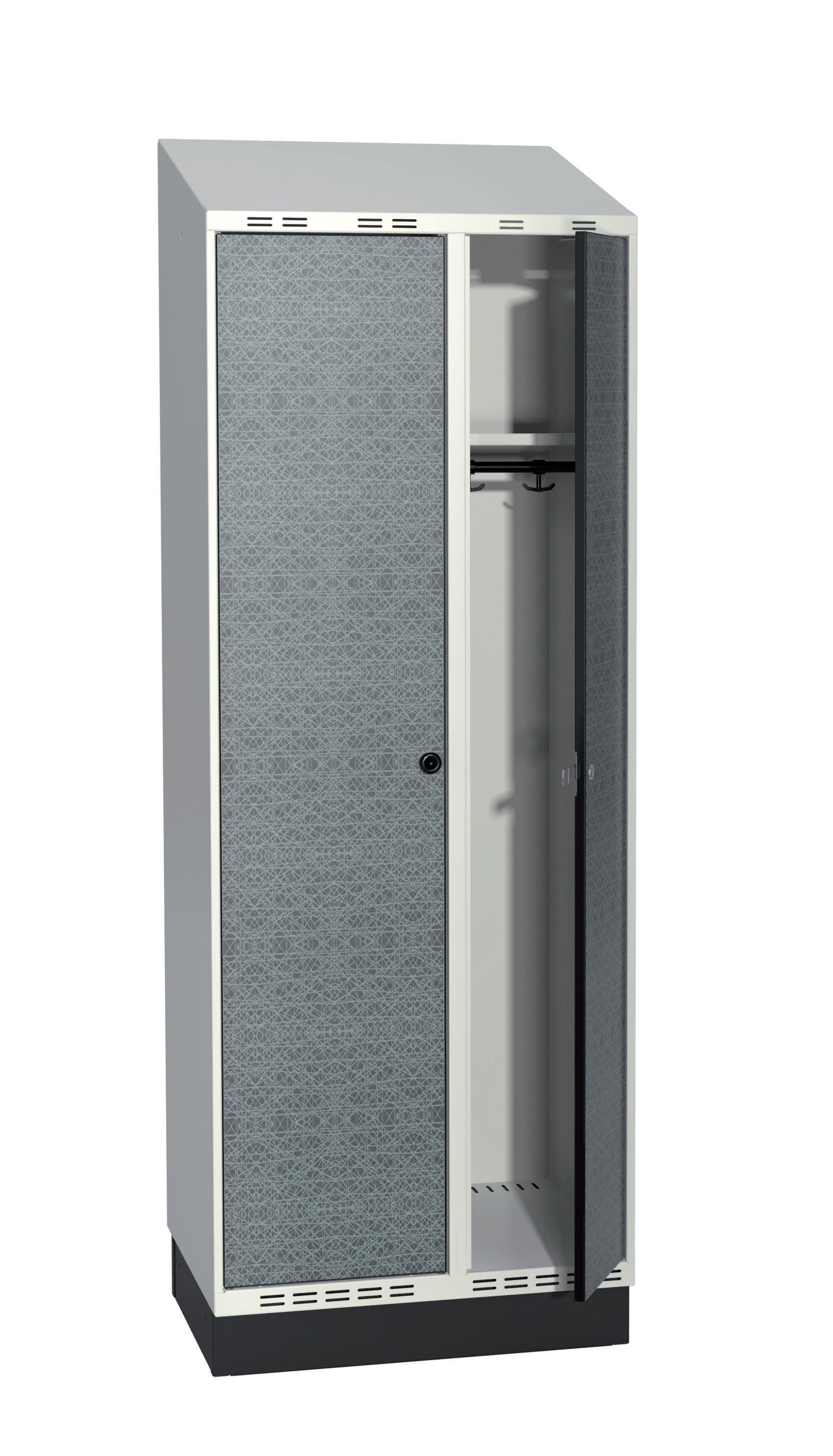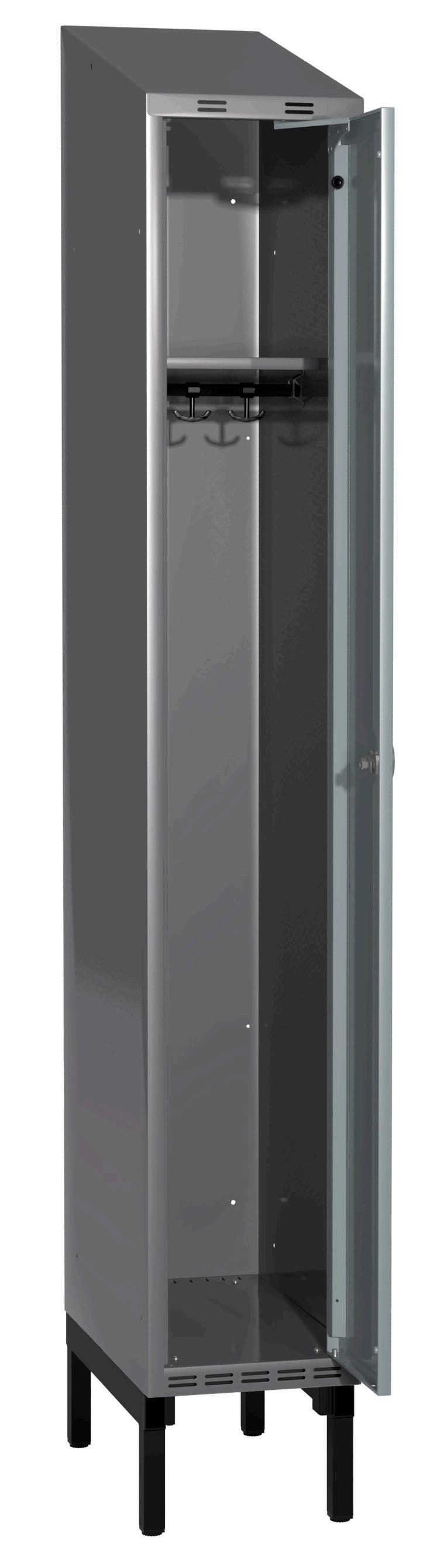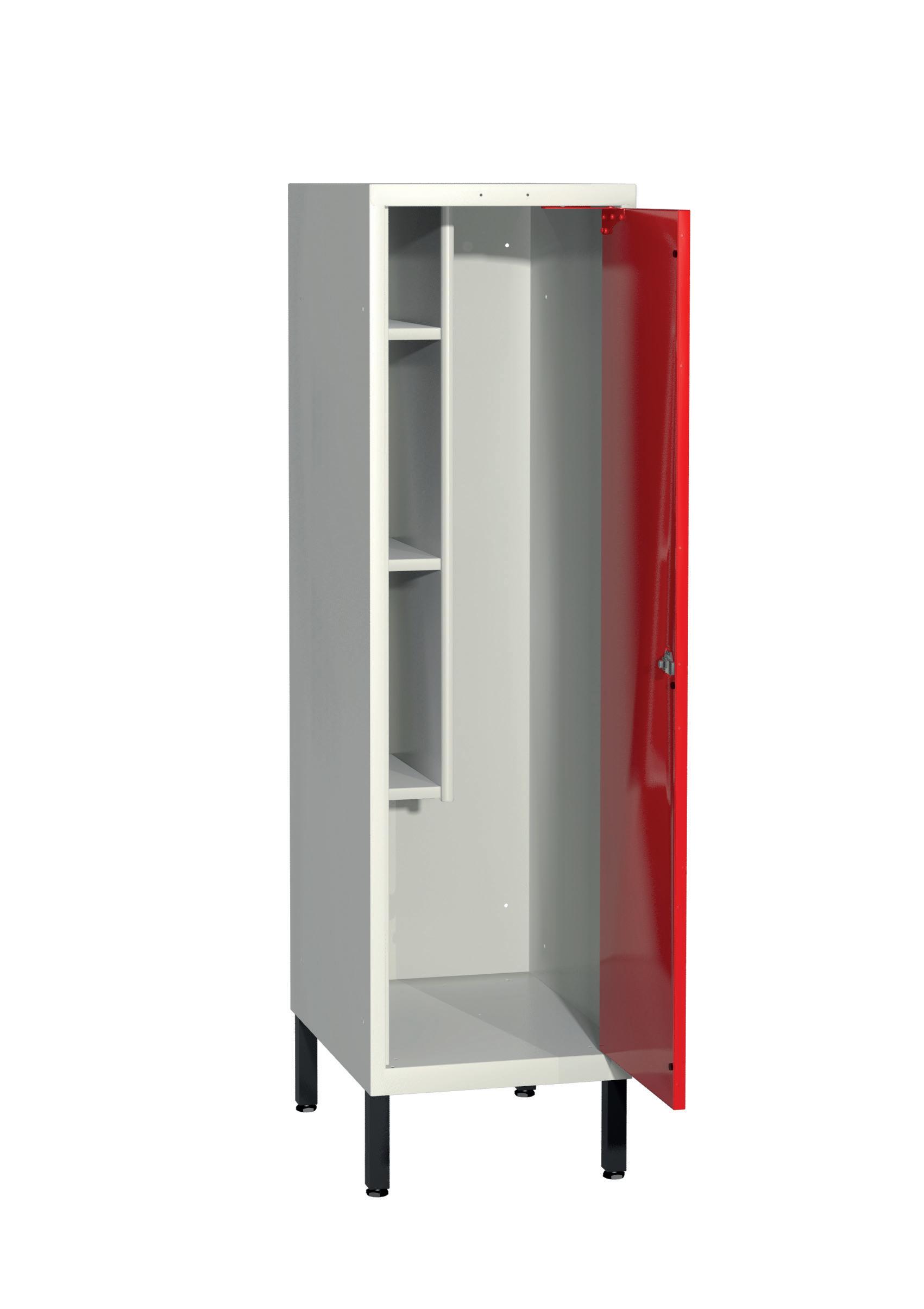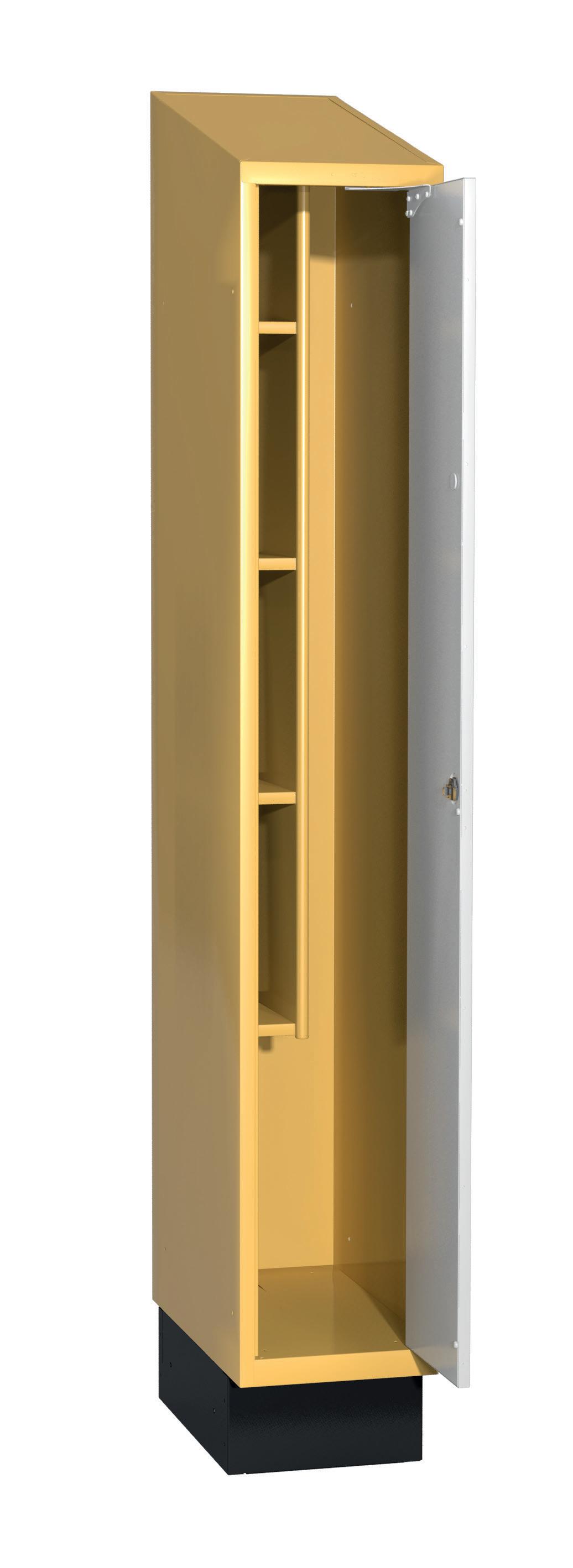 På olika arbetsplatser används olika sorters arbetskläder. Önskemålen om inredningsalternativ i klädskåpen skiftar efter behov. Vissa arbetar utomhus och vill kunna hänga in blöta arbetskläder för torkning över natten. Andra ser mer klädskåpet som en garderob för de egna ytterkläderna under arbetsdagen. Vi har därför ett mycket brett sortiment av både klädskåp och tillbehör och vi vågar lova att du kommer att hitta ett skåp som passar just dina behov. Gemensamt för alla skåpmodeller är den stabila, helsvetsade stålstommen. Du väljer sedan själv underrede, dörrtyp, färg, låsning, tillbehör och ventilationsalternativ.