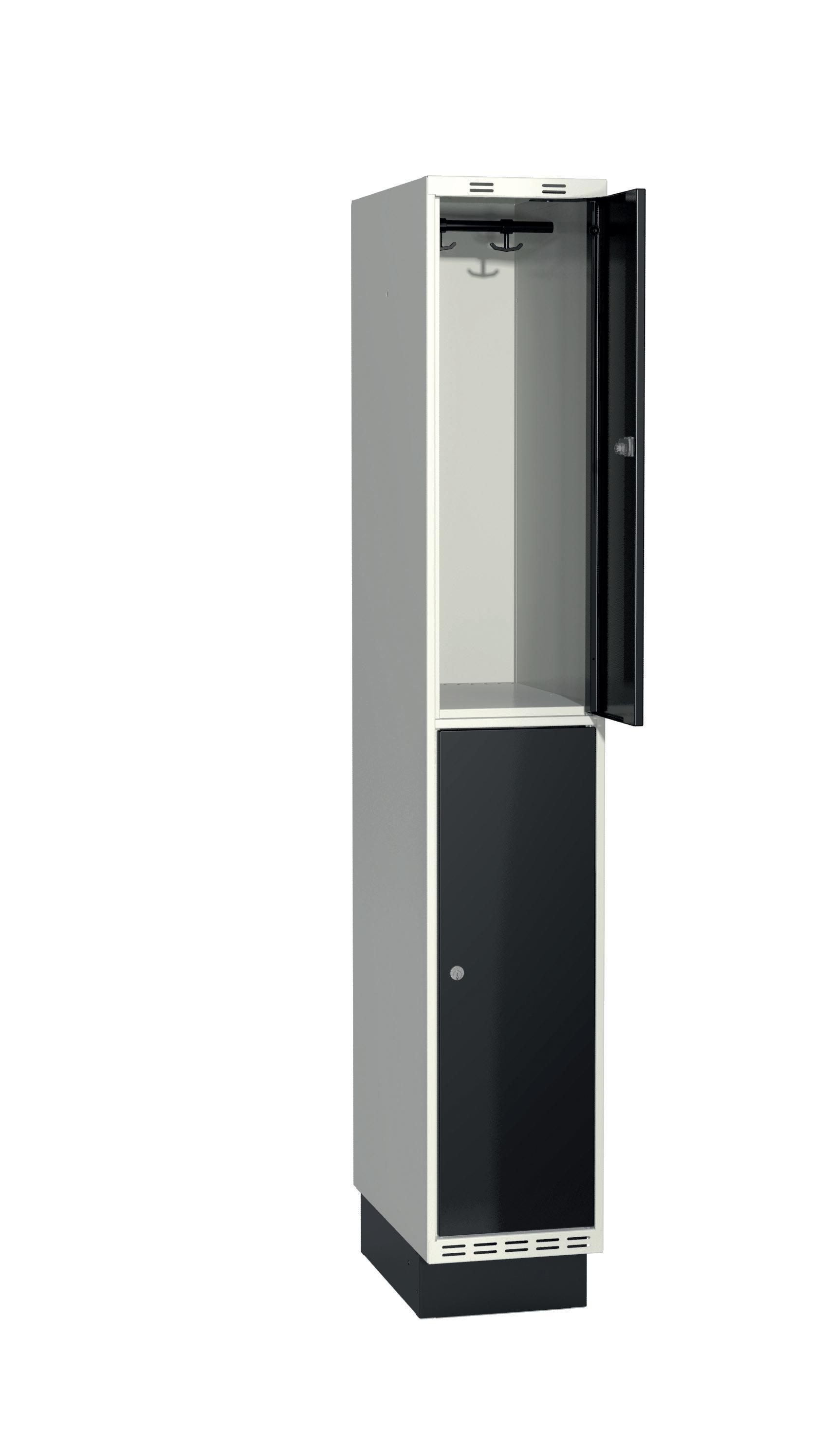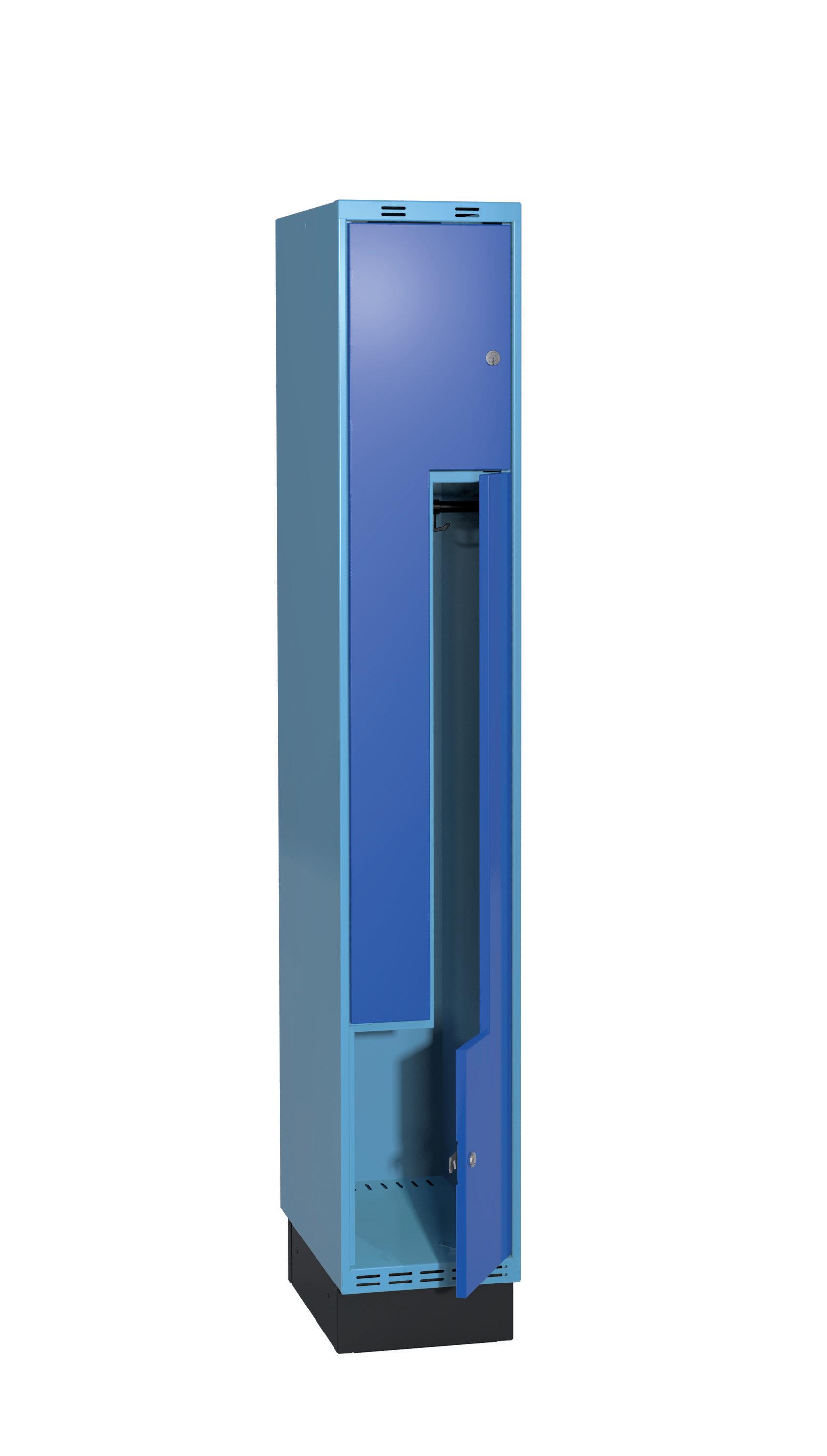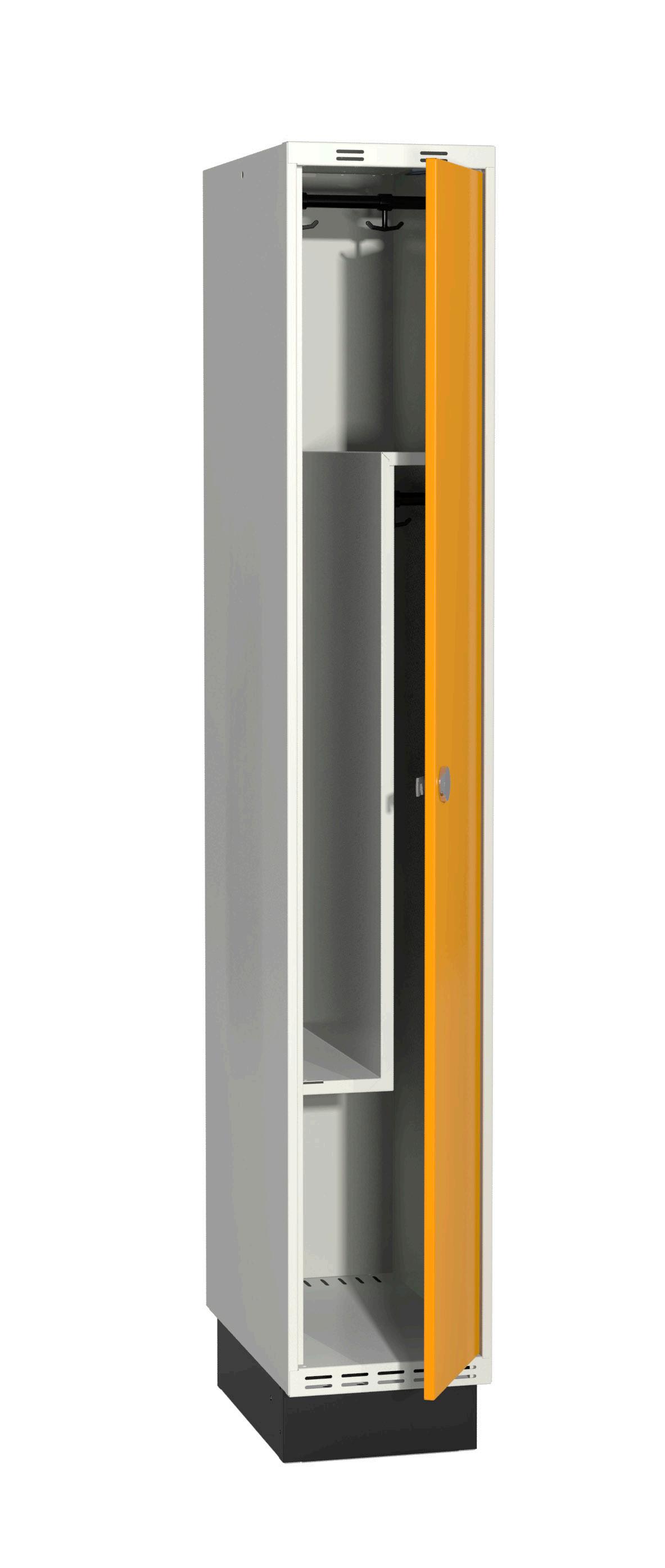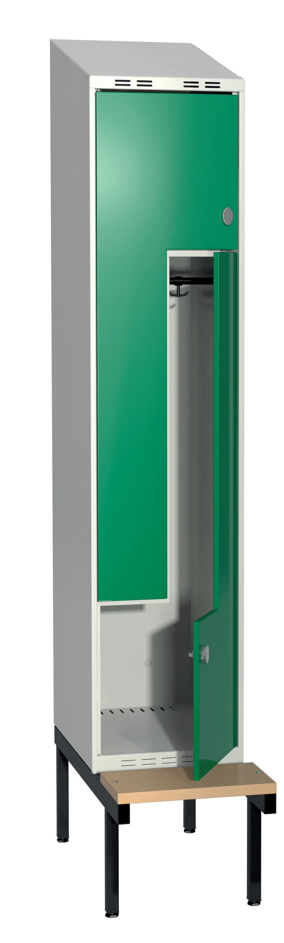 På olika arbetsplatser används olika sorters arbetskläder. Önskemålen om inredningsalternativ i klädskåpen skiftar efter behov. Vissa arbetar utomhus och vill kunna hänga in blöta arbetskläder för torkning över natten. Andra ser mer klädskåpet som en garderob för de egna ytterkläderna under arbetsdagen. Vi har därför ett mycket brett sortiment av både klädskåp och tillbehör och vi vågar lova att du kommer att hitta ett skåp som passar just dina behov. Gemensamt för alla skåpmodeller är den stabila, helsvetsade stålstommen. Du väljer sedan själv underrede, dörrtyp, färg, låsning, tillbehör och ventilationsalternativ.