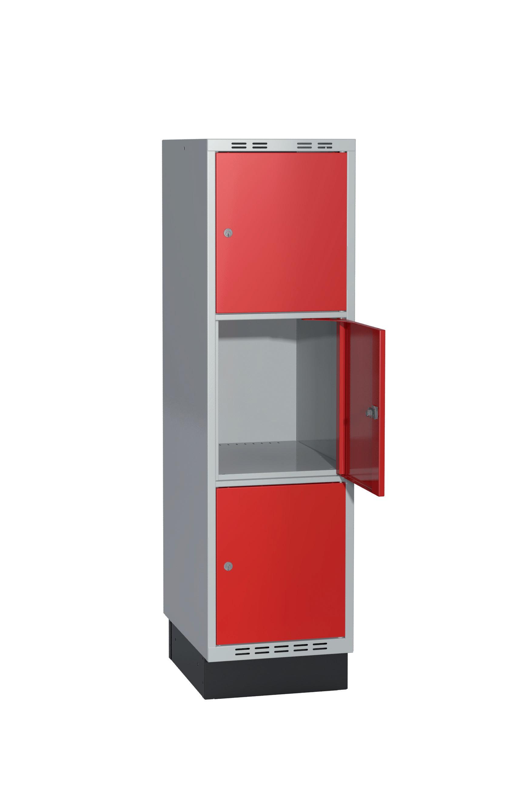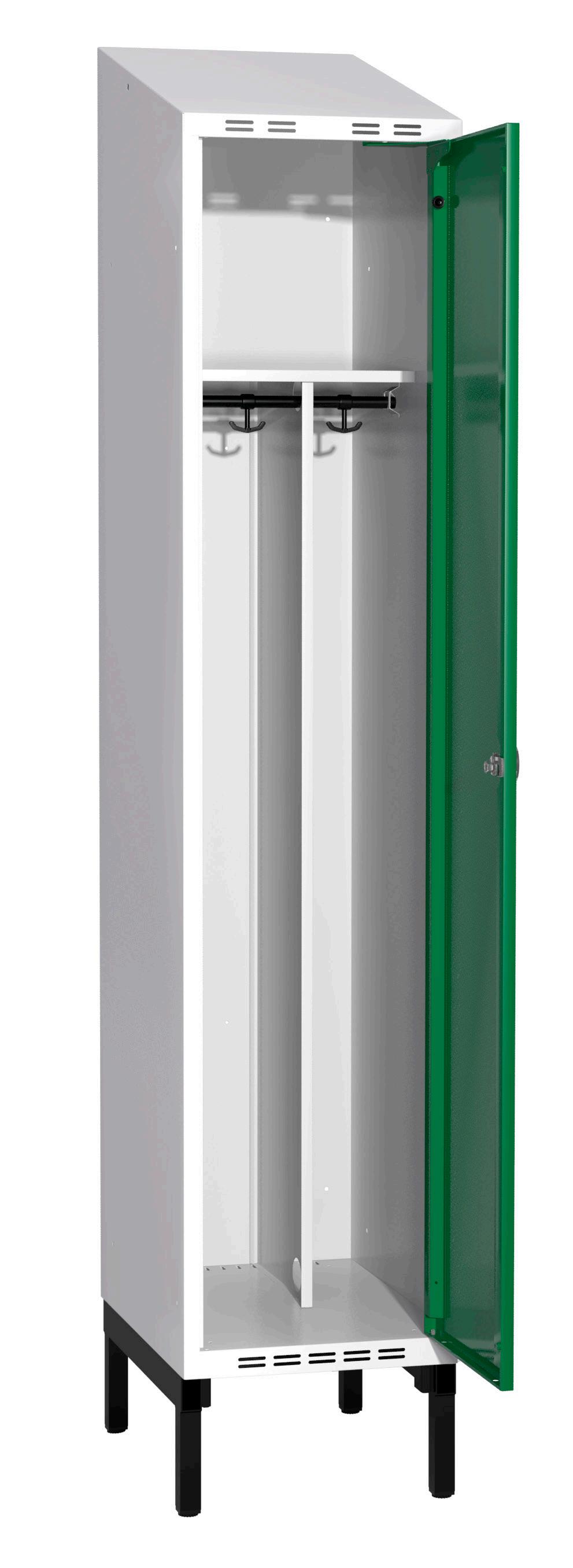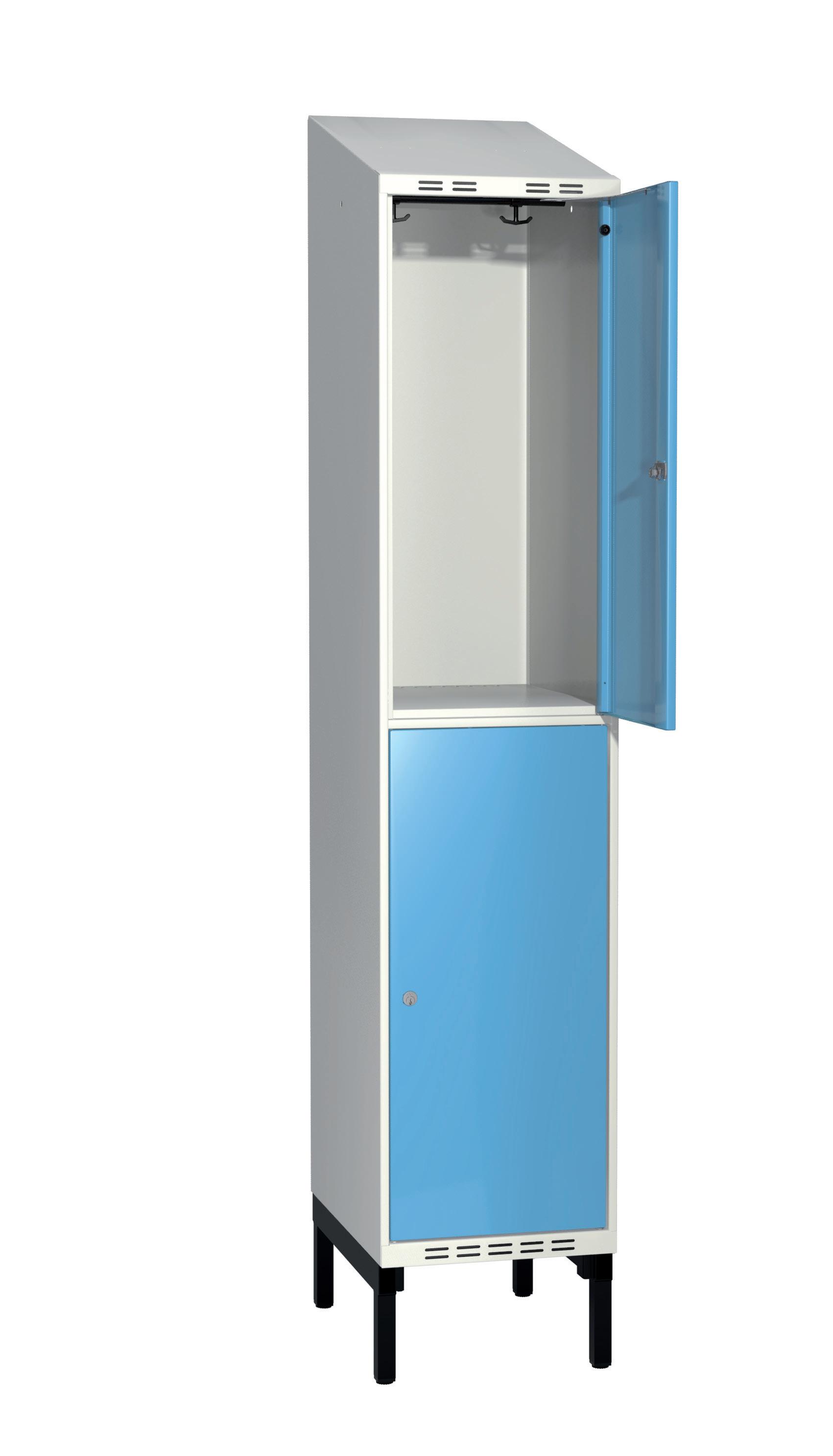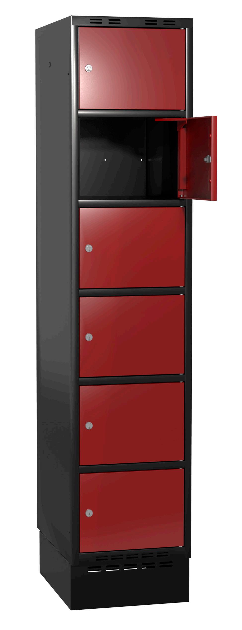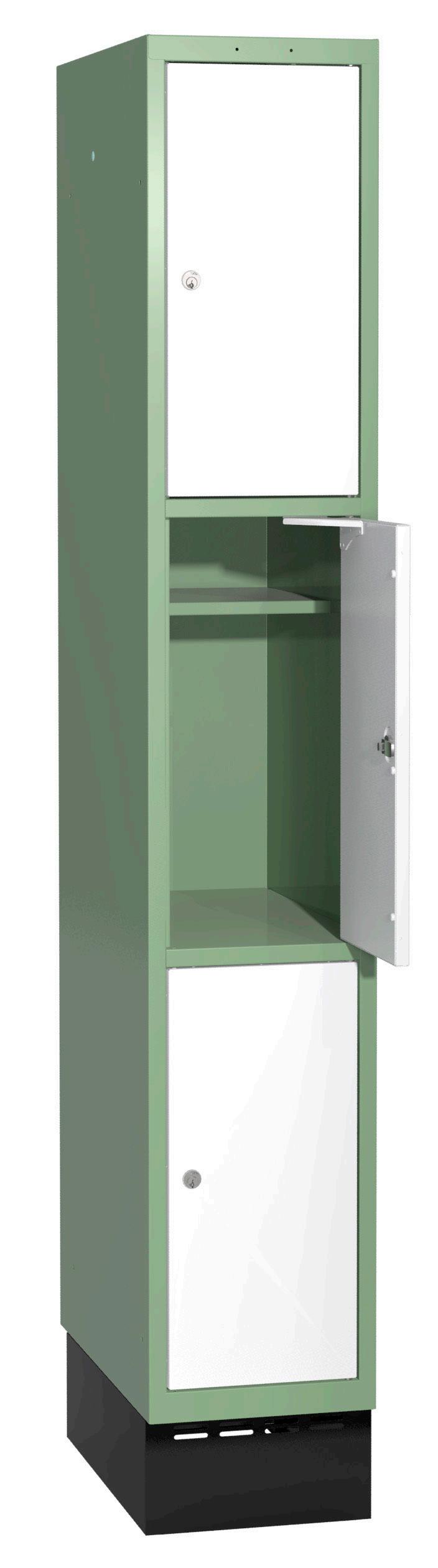 På olika arbetsplatser används olika sorters arbetskläder. Önskemålen om inredningsalternativ i klädskåpen skiftar efter behov. Vissa arbetar utomhus och vill kunna hänga in blöta arbetskläder för torkning över natten. Andra ser mer klädskåpet som en garderob för de egna ytterkläderna under arbetsdagen. Vi har därför ett mycket brett sortiment av både klädskåp och tillbehör och vi vågar lova att du kommer att hitta ett skåp som passar just dina behov. Gemensamt för alla skåpmodeller är den stabila, helsvetsade stålstommen. Du väljer sedan själv underrede, dörrtyp, färg, låsning, tillbehör och ventilationsalternativ.