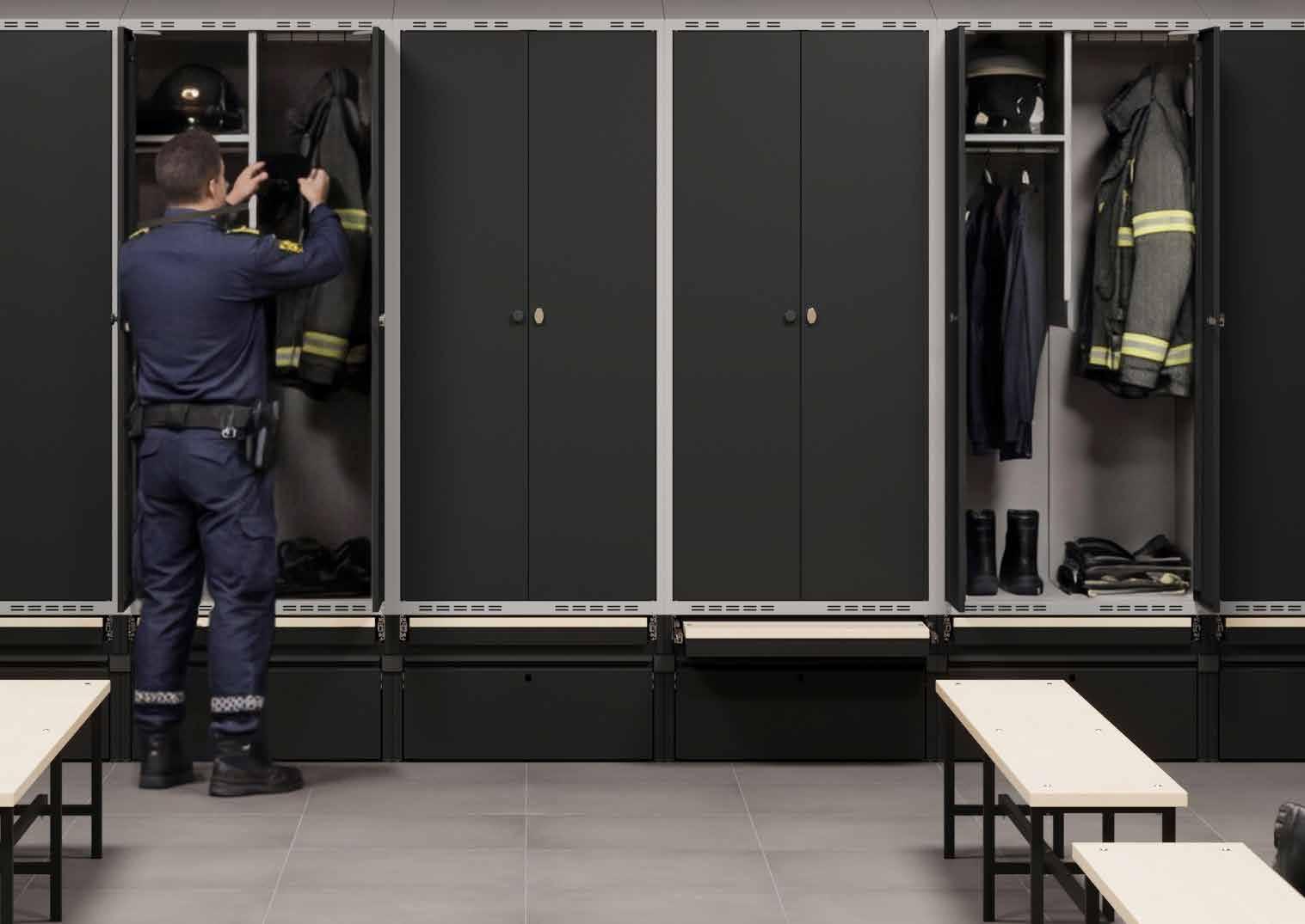 Glöm alla problem med fuktiga kläder som inte torkar och dålig lukt i omklädningsrummet. Välj istället något av våra tre olika ventilationssystem i klädskåpen. En tumregel är att ju blötare kläder och handdukar du hänger in i klädskåpet, desto bättre torkeffekt måste du kräva av ventilationssystemet. Allt för att kunna njuta av frisk luft i omklädningsrummet och torra kläder nästa arbetsdag.