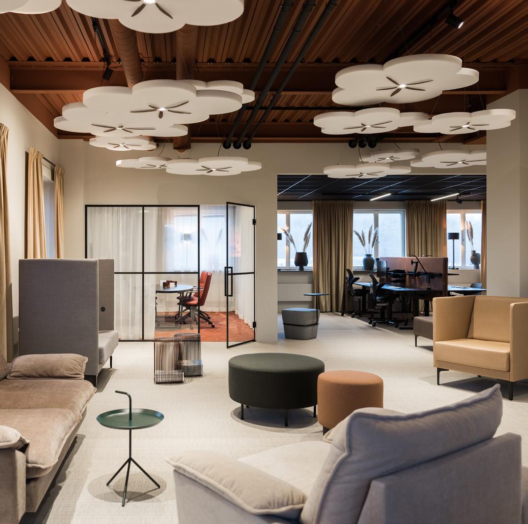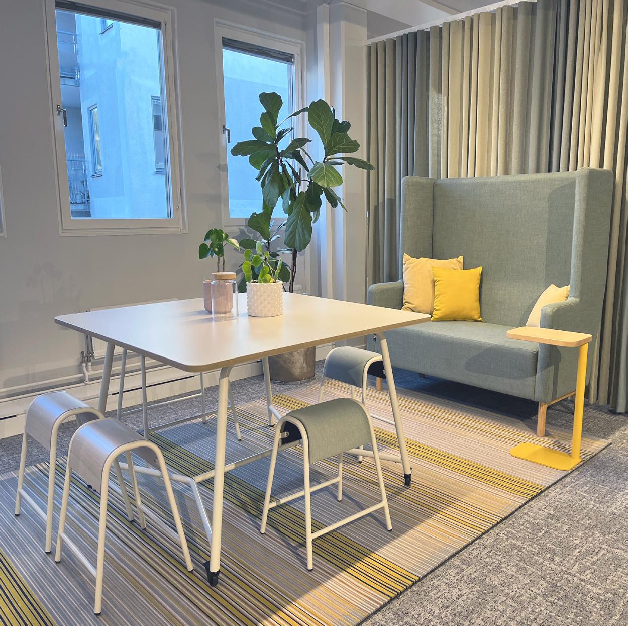 I tätt samarbete med kunden levererade vi inredningslösningar och all lös inredning till arbetsplatser, mötesrum och sociala ytor.