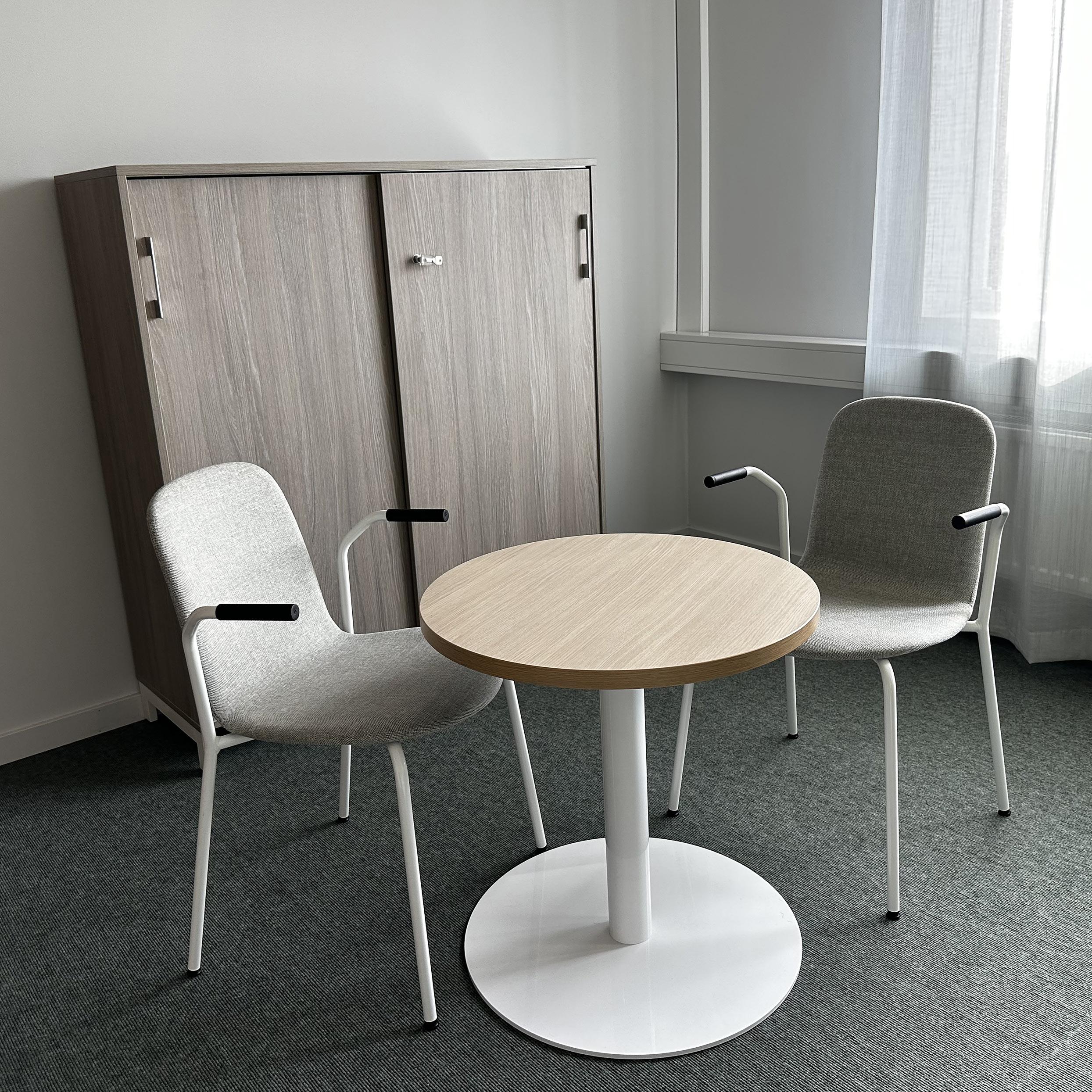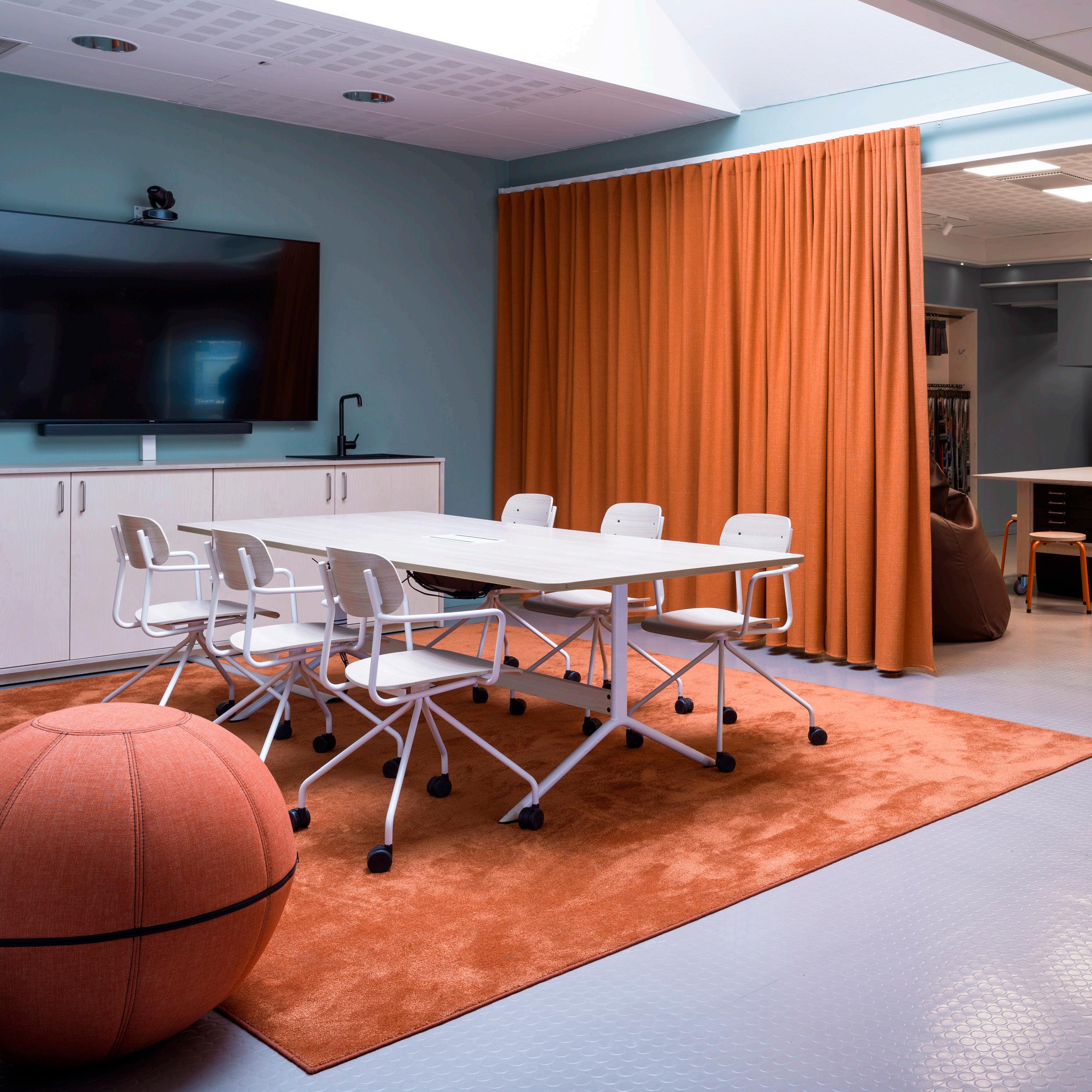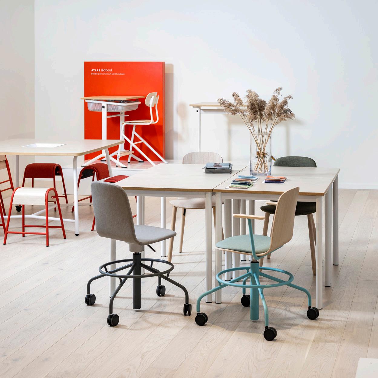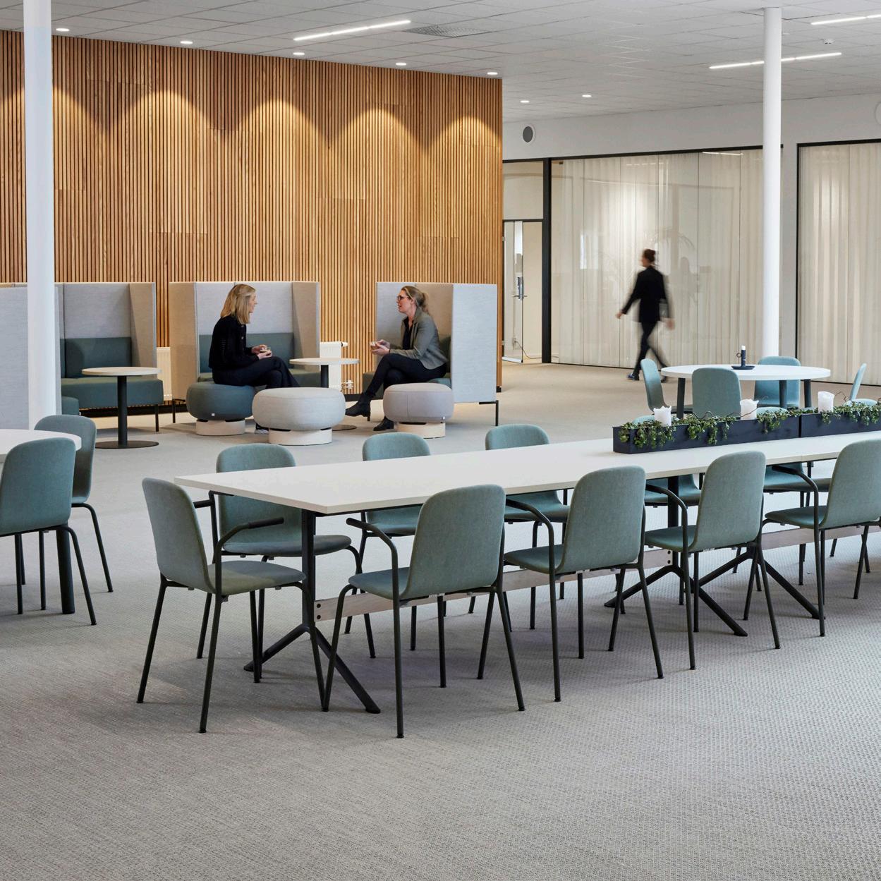 Våra möbler är till för att användas mycket och ofta samt i olika miljöer och vi utmanar gärna en intetsägande kontorsmiljö med inspirerande möbler från våra andra affärsområden. Våra populära skolserier gör sig lika bra i arbetsplatsens matsal, samtalsrum eller konferensrum.