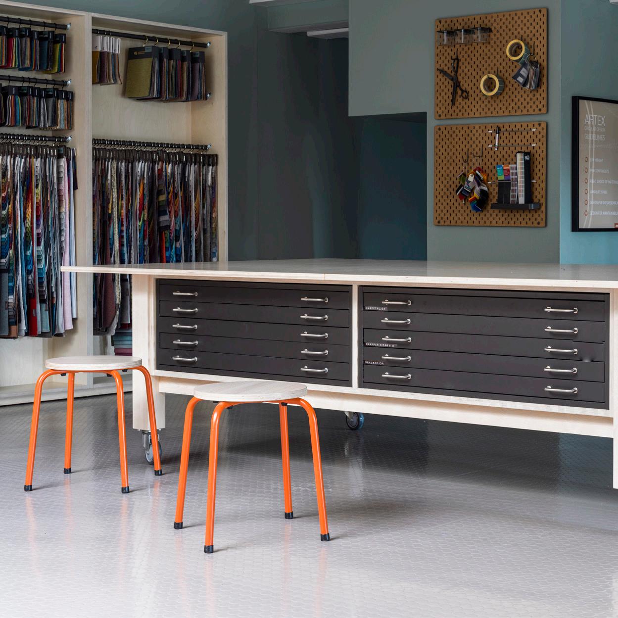 I vår utställning i Stockholm finns ett stort materialbibliotek med tyger och material från våra leverantörer. Detta ger er möjlighet att skräddarsy era tillval och se och känna på tygerna innan ni bestämmer er. Här finns även möjlighet att provsitta möbler och få mer information om våra produkter.