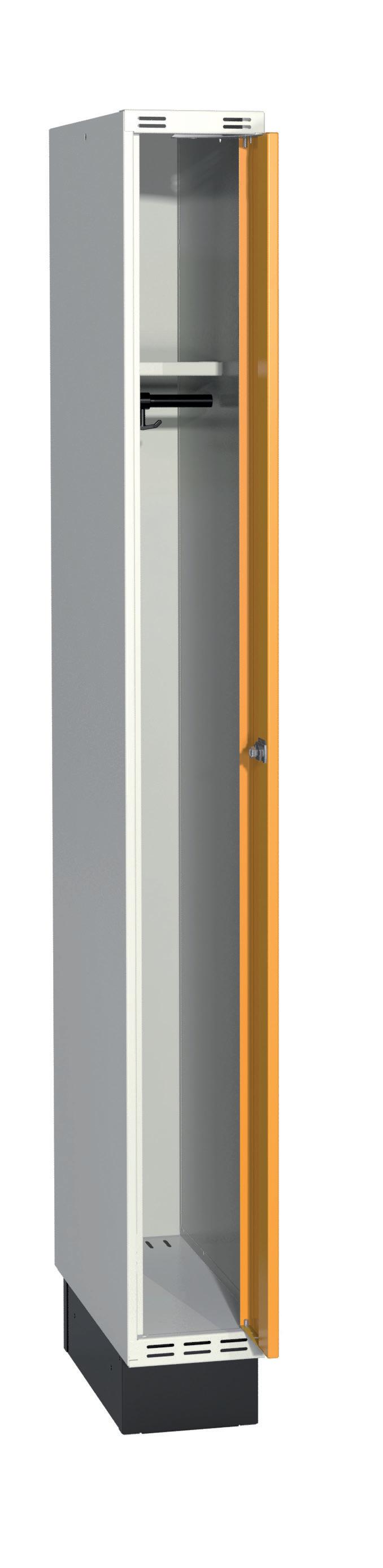 På olika arbetsplatser används olika sorters arbetskläder. Önskemålen om inredningsalternativ i klädskåpen skiftar efter behov. Vissa arbetar utomhus och vill kunna hänga in blöta arbetskläder för torkning över natten. Andra ser mer klädskåpet som en garderob för de egna ytterkläderna under arbetsdagen. Vi har därför ett mycket brett sortiment av både klädskåp och tillbehör och vi vågar lova att du kommer att hitta ett skåp som passar just dina behov. Gemensamt för alla skåpmodeller är den stabila, helsvetsade stålstommen. Du väljer sedan själv underrede, dörrtyp, färg, låsning, tillbehör och ventilationsalternativ.