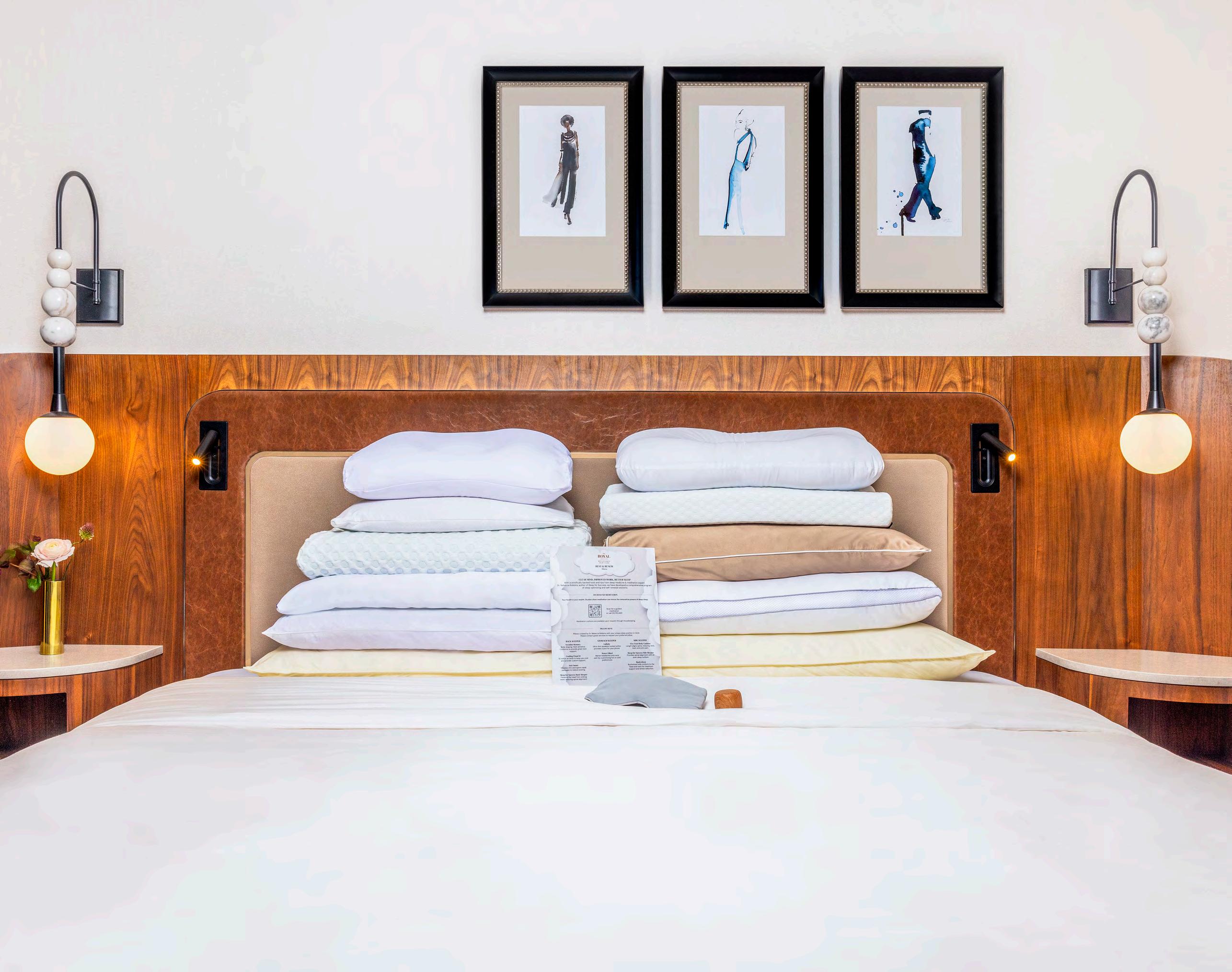 Choose from a selection from the top ten curated pillow menu, on-demand meditation, sleep masks, blackout curtains, noise machines, and complimentary reading program curated by Bedside Reading.