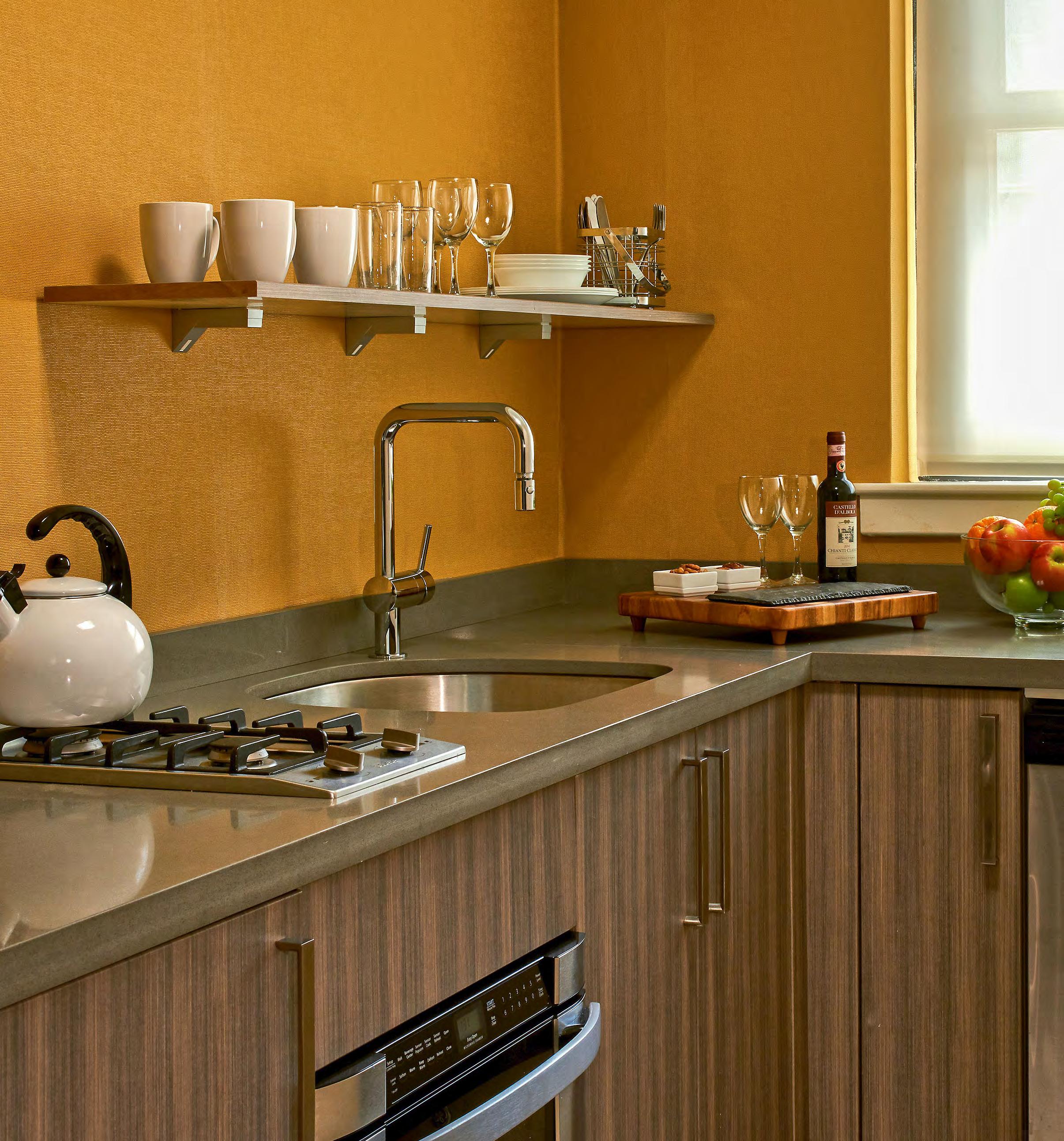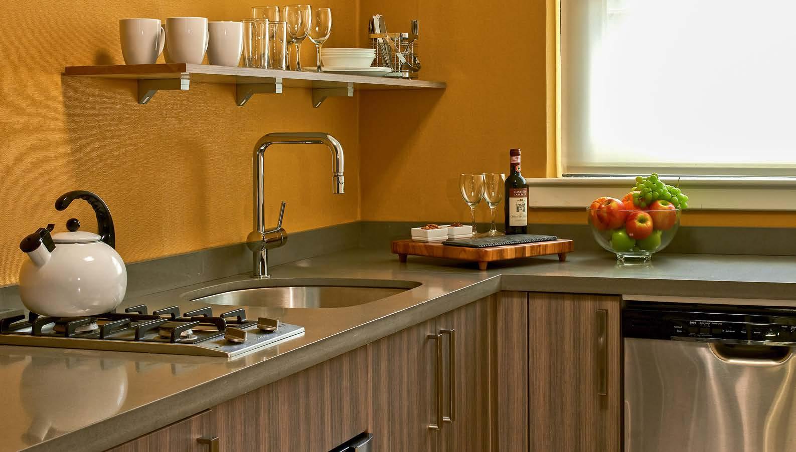 • Fully appointed kitchens stocked with Fishs Eddy dishware