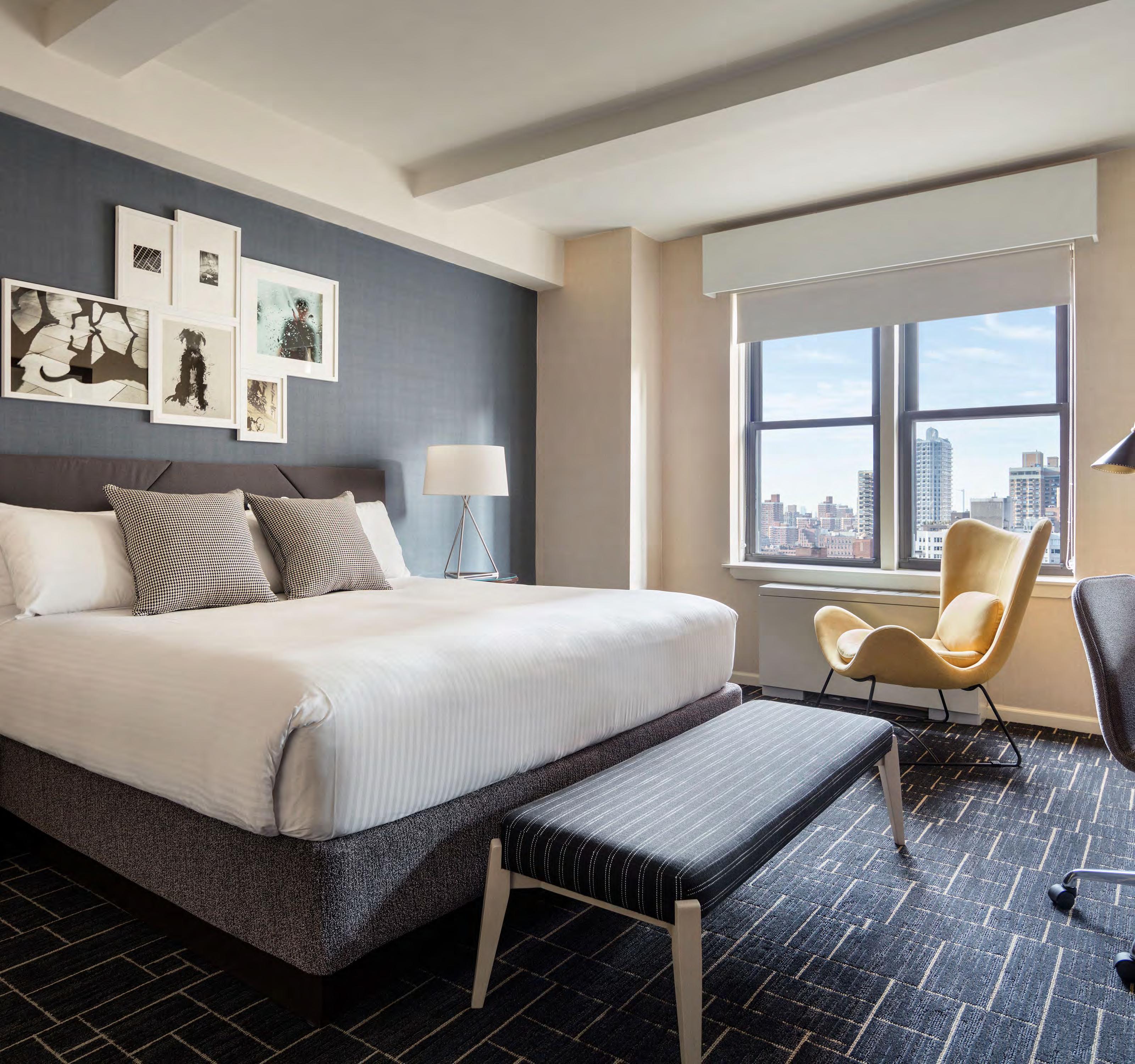 The lobby strives to be a unique experience added to the New York scene, while the hotel’s guestroom and suites are where the guests come home.