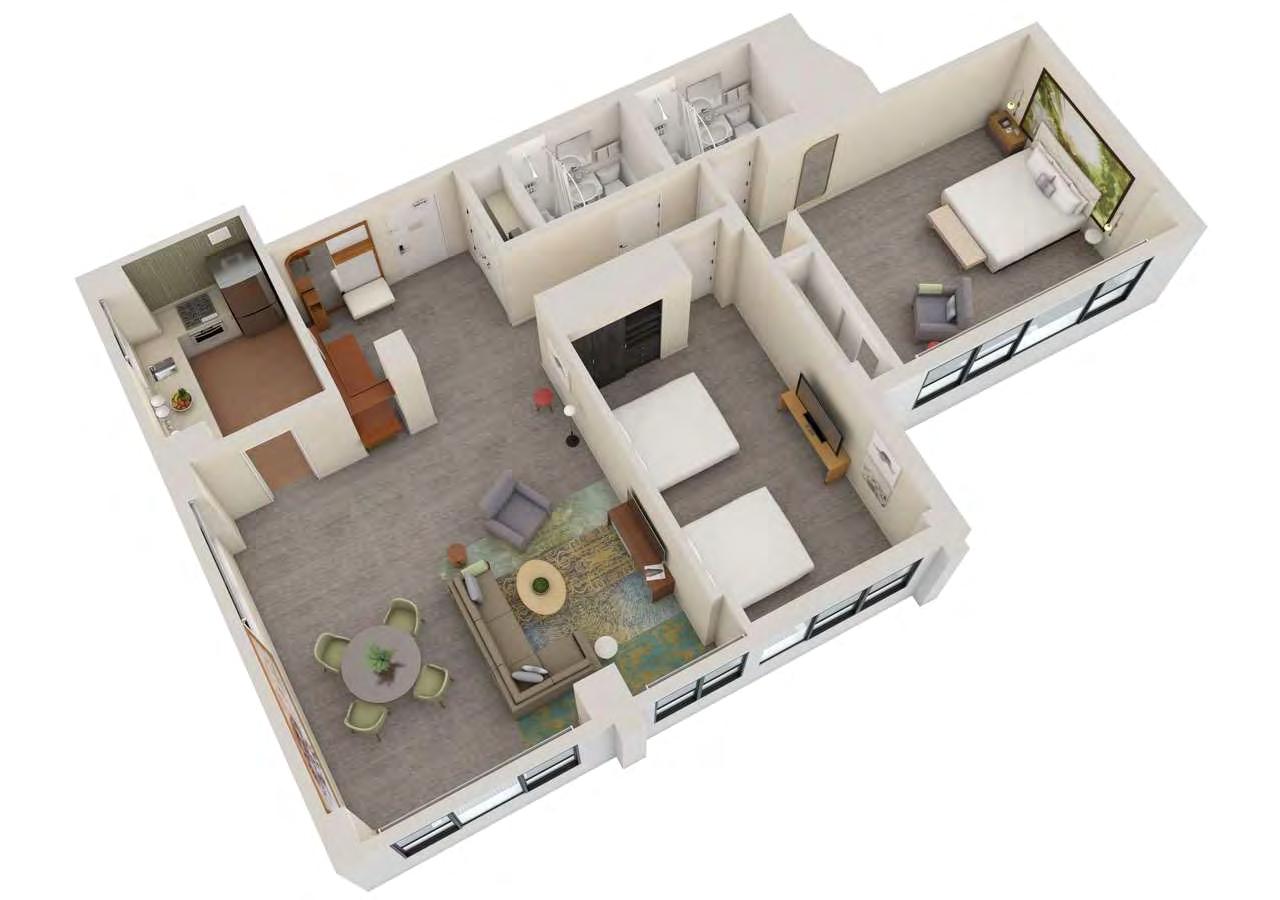 • Sleeper sofa in every suite to accommodate guests or caregivers
