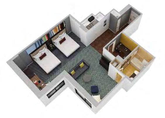 DELUXE STUDIO: 325 - 350 sq. ft.