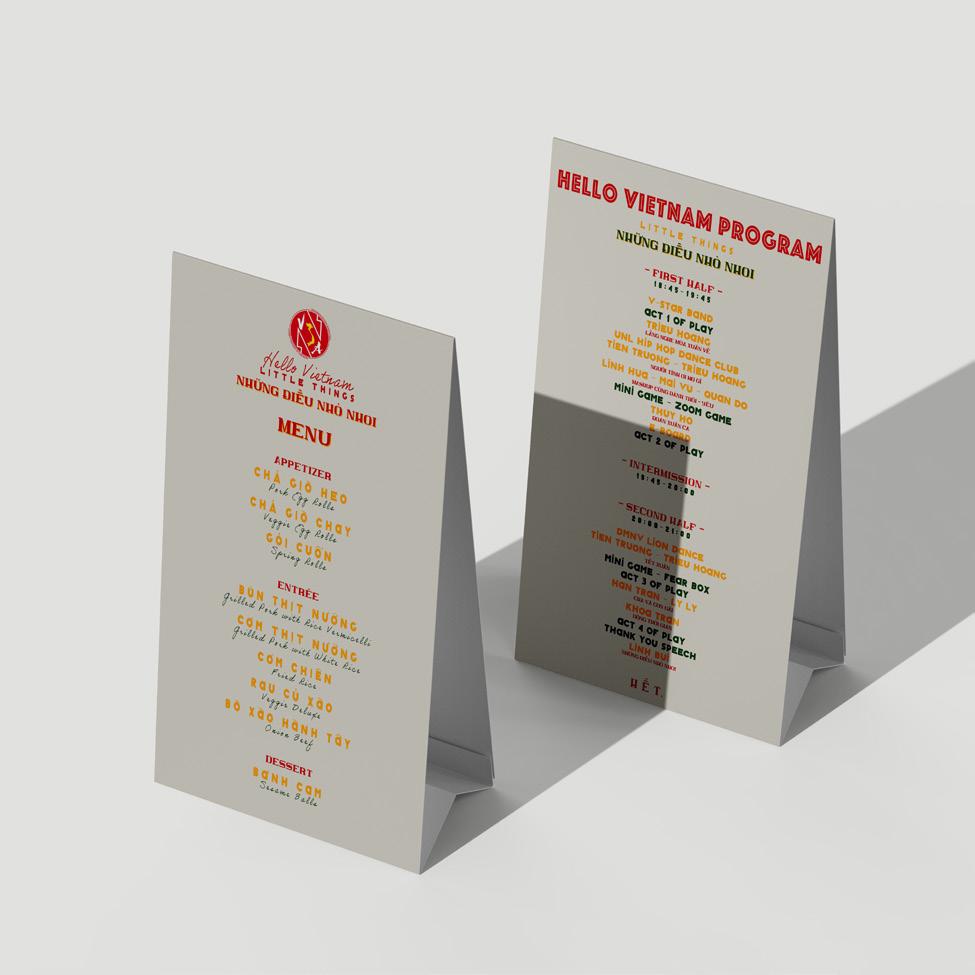 The objective of this project is to create the menu, tickets, and graphics for the Vietnamese Student Association at UNL’s annual Hello Vietnam event. In order to produce coherent and aesthetically appealing designs, the project called for the capacity to work within standards , an immersion in Vietnamese culture, and a close attention to details.