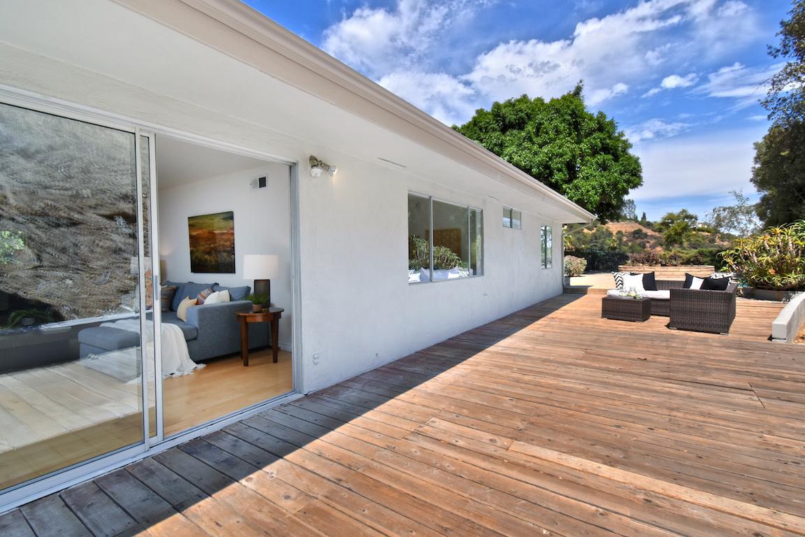 Welcome to the beautiful one level contemporary view home located on a quiet and serene hillside setting, South of Boulevard in the highly coveted area of Stone Canyon in Sherman Oaks! This home has a tranquil and private setting yet close to all the shops and restaurants on the boulevard. The subject property has 4 bedrooms, 2.75 baths, living room with large dining area, family room and much more. Beyond the formal entry, a family room features wood paneling, smooth ceilings, clean wood floors and back to back brick fireplace leading to a super light and bright living room and dining area with smooth ceilings, clean wood flooring, which flows through sliding doors to a wooden deck for entertaining or alfresco dining. A clean eat in kitchen is just the right space for cooking your meals or having breakfast. A conveniently located laundry room and behind the 2 car direct access garage is a 4th bedroom, perfect for a guest suite or home office. On the opposite side of the home is a 3 bedroom cluster featuring spacious sleeping rooms with plenty of closet space and includes a lovely primary suite. And wait till you see the beautiful flat piece of land to the North side of the property with plenty of room for a garden, building a swimming pool and most of all with the beautiful views of the surrounding hillside and peek a boo views of the Santa Susanas. Parking for up to 6 cars on the property is an added bonus.
