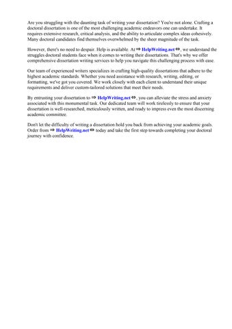 At ⇒ HelpWriting.net⇔, we prioritize quality, originality, and timely delivery. When you choose us, you can rest assured that your dissertation will be meticulously crafted to meet the highest academic standards. Don't let the complexities of dissertation writing hold you back. Trust ⇒ HelpWriting.net⇔ to help you succeed in your academic endeavors. Order now and take the first step towards achieving your academic goals.