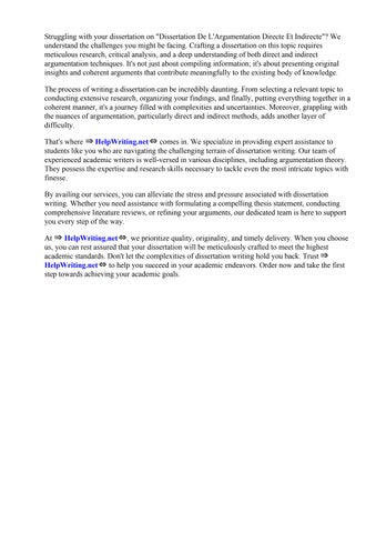 Struggling with your dissertation on "Dissertation De L'Argumentation Directe Et Indirecte"? We understand the challenges you might be facing. Crafting a dissertation on this topic requires meticulous research, critical analysis, and a deep understanding of both direct and indirect argumentation techniques. It's not just about compiling information; it's about presenting original insights and coherent arguments that contribute meaningfully to the existing body of knowledge.