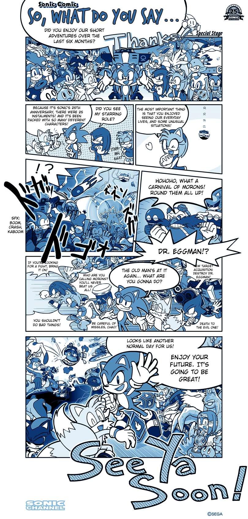 This is a fan made adaptation of the previously Japanese exclusive Sonic Channel Comic, released only in Japanese around 2016. This comic has been preserved and restored to a point that allowed it not only to be read but also to be enjoyed by many different fans, now fully in English! There was also added all kinds of official Sonic character art released around the 2000s to make this the definitive comic edition that never existed!