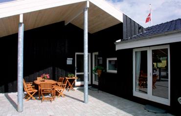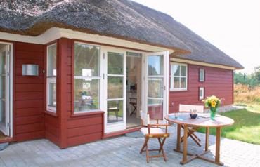 der udgang til den dejlige solterrasse, som også har en del overdækket. Terrassen giver mulighed for sol dagen lang fra øst, syd og vest. Et godt familiehus som dækker alle behov til en god ferie.