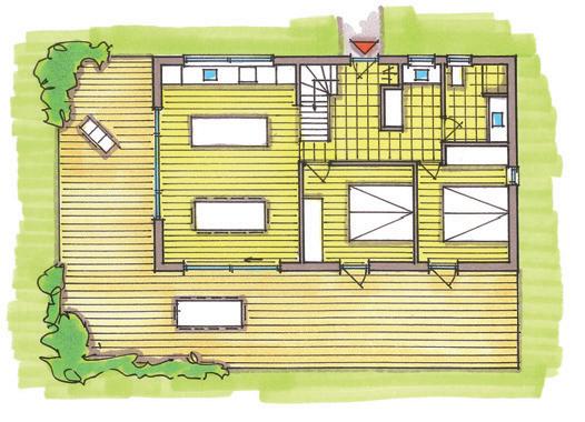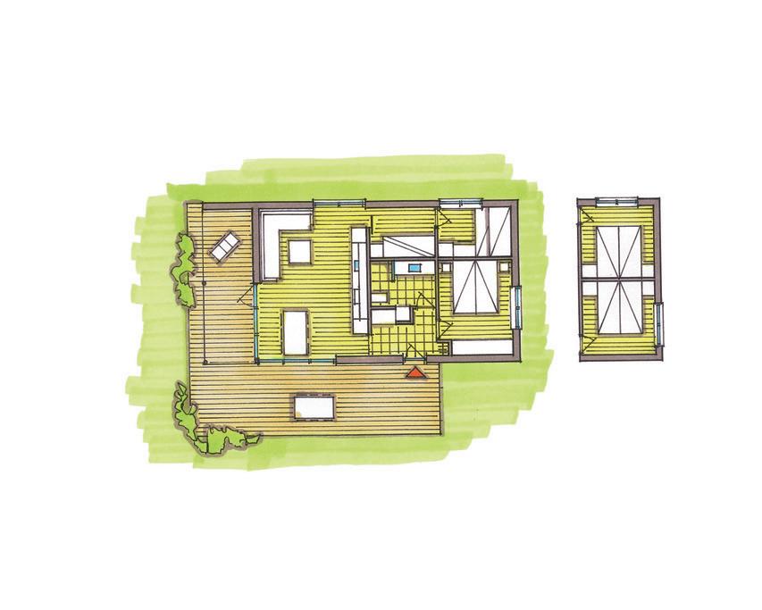 terrassen. Et dejligt sted at opholde sig på lune sommeraftener. Huset har ingen form for spildplads og arealet er derfor udnyttet fuldt ud. Endvidere har huset et stort og rummeligt redskabsrum.