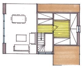 er der trappe til 1. sal, hvorfra man har et flot syn ned i køkken og stue. På 1. sal alkove samt stort soverum. Det store ateliervindue i gavlen af huset giver et utroligt flot lysindfald såvel i stueplan som på 1. sal.