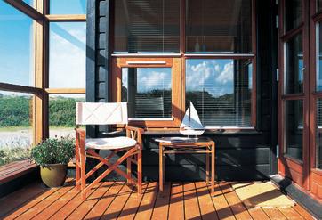 De store vinduespartier, trekantruderne og de lige linier giver dette hus et virkeligt harmonisk og smukt ydre. Huset har en særdeles god indretning uden nogen form for spildplads. Her er 7 gode sengepladser fordelt i 3 rum. Lige fra man træder ind i den kombinerede indgang, som indeholder både entré og bryggers, føler 123 Sonne Huse