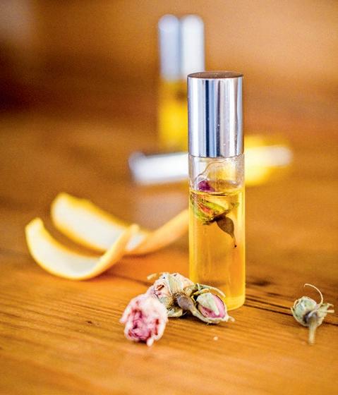 sich die ganze Kraft des natür lichen Rohstoffes. Schon vor 5.000 Jahren destillierten Alche- mist:innen Pflanzenteile und füllten die Düfte in kleine Fla- schen. Das Ergebnis nannten sie ätherisch. Das bedeutet so viel wie flüchtig oder himmlisch. Diesen himmlischen Düften liegt übrigens auch ein irdischer Nut- zen für die Pflanzenwelt zugrun- de: Denn die Duftstoffe, die in kleinen Öldrüsen in Blüten und Blättern enthalten sind, schützen die Pflanzen vor Fraßfeinden und Krankheiten oder locken Insekten zur Bestäubung an. Und die Düf- te erfreuen uns Menschen.