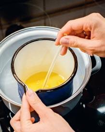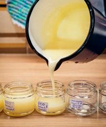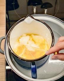 Kokosöl und Bienenwachs im heißem Wasserbad schmelzen.