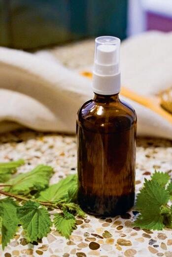 Die getrocknete Brennnessel mit heißem Wasser übergießen und 15 Minuten ziehen lassen. Tee in eine Flasche umfüllen und etwas abkühlen lassen. Apfelessig und ätherische Öle dazugeben, leicht schütteln und Flasche verschließen.