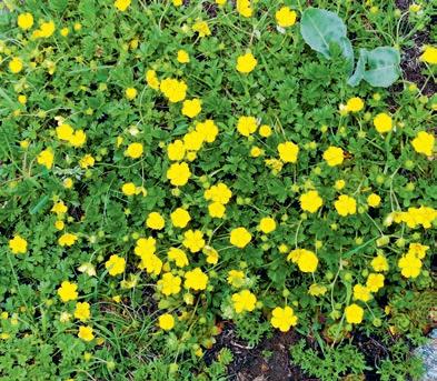 Das Gänsefingerkraut wächst dicht am Boden und bildet förmlich Teppiche.