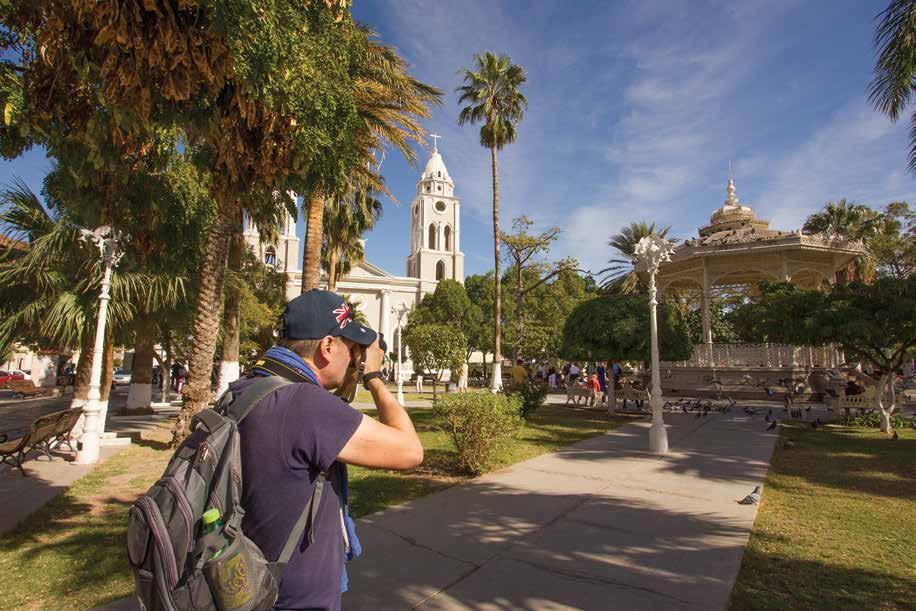 Avenida serdán, at the heart of the city where Guaymas’ history is shown through its buildings, leads to the most re presentative space of this port’s landscape: Plaza de los tres Presidentes. Built in honor of Presidents adolfo de la Huerta, Plutarco elías Calles and abelardo rodrígez, it is the center of the city’s culture, entertainment and family gatherings. near Plaza de los tres Presientes, in downtown Guaymas, are templo san Fer nando church, City Hall, the county market, a beautiful boardwalk and Marina Guaymas. a little further down avenida serdán, is the city’s port authority and docks. the newest attraction in downtown Gua ymas are the dancing water fountains, a multicolor water show enhanced by Mexican popular music.
