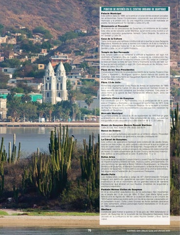 PUNTOS DE INTERÉS EN EL CENTRO URBANO DE GUAYMAS Palacio Municipal Este edificio data de 1899; se levantó en el solar donde estaban ubicadas las antiquísimas Casas Consistoriales, corporación que administraba el municipio y la prisión civil. Es una magnifica construcción realizada en piedra. Se encuentra en Av. Serdán y calles 22 y 23. Monumento al Pescador El símbolo de los pescadores de Guaymas y el emblema de la ciudad. Esta obra es del escultor Julián Martínez, quien tomó como modelo a un legendario pescador guaymense llamado Celso Grajeda. Se ubica en Av. Serdán y Calle 24. Casa de la Cultura Tiene como sede una hermosa construcción en lo que fue la casa Zaragoza Maytorena. Abierta de lunes a viernes con horarios de 8 de la mañana a 20 horas y sábados hasta las 12 de medio dia. Admisión gratuita. Ave. Serdán y calle 14, en el centro histórico. Templo de San Fernando Este templo católico se comenzó a edificar a mediados del siglo XIX dedicado a Fernando, Rey de España, llevándose su construcción muchos años. Se inició en la esquina noreste (calle 25), luego se construyó la nave principal, la torre del lado norte y finalmente la torre del lado sur, la que se terminó entrado el siglo XX. Está ubicada en Av. Alfonso Iberri entre las calles 24 y 25. Plaza de los Tres Presidentes Construida en honor de los presidentes Adolfo de la Huerta, Plutarco Elías Calles y Abelardo L. Rodríguez, quienes fueron nativos del puerto de Guaymas. Este monumento se inauguró en Agosto de 1973. Su ubicación es Av. Serdán y calle 23. Plaza 13 de Julio.Nombrada originalmente como Plaza de Armas en septiembre de 1883 por el Gral. Guillermo Carbó. En ella se aprecia un hermoso kiosko de fierro vaciado que aún conserva sus detalles originales. Esta plaza se ubica frente a la iglesia de San Fernando.Av. Alfonso Iberri, entre las calles 23 y 24. Auditorio Cívico de Guaymas Fue construido por el H. Ayuntamiento, con la participación de la Junta para el Progreso y Bienestar, y se inauguró en septiembre de 1973. Está ubicado entre la calle 20 y el Malecón Malpica. Se le ha dado el nombre de Fray Ivo Toneck como reconocimiento a la obra que este misionero ha realizado en Guaymas. Mercado Municipal La primera piedra se colocó el 16 de septiembre de 1900 fue un gran acontecimiento de su época. Esta construcción de estilo europeo fue inaugurada un año después y su costo total fue de $ 10,000 pesos. Museo de Guaymas Marcos Russek Martínez Calle 25 Esq. Ave. Iberri Tel./Ph: (622) 222 8074 Banco de Sonora Edificio que por su belleza y ubicación es un símbolo urbano. Propiedad particular. Actualmente se gestiona su rescate y restauración. La Cárcel de Guaymas. Este edificio de apariencia medieval está construido de piedra braza, cuenta con tres crujías, un patio central y una torre en la que se instaló un reloj de cuatro caras. La Cárcel de Guaymas, inaugurada en 1897, es un monumento nacional y existe un proyecto de restauración para convertirlo en museo. Es sede actualmente de Acción Cívica y del Archivo Histórico. Este edificio se encuentra en la Calle 15 entre Ave. 11 y 12. Bellas Artes Es la sede de la Fundación Cultural Infantil y Juvenil Fray Ivo Toneck donde se imparten cursos y talleres de baile, música y canto, principalmente. En este recinto se han gestado el Ballet Folklórico Guadalupano, la Orquesta Sinfónica de Guaymas, el Mariachi Guadalupano, la Banda Marchante y el proyecto de Guaymas T.V. Este edificio ubicado en la colonia Golondrinas, fue alguna vez la Federación de Cooperativas Pesqueras. Muelle Patio Las instalaciones portuarias a cargo de API (Administración Portuaria Integral) son patrimonio guaymense que para muchos se convierte en espectáculo al ver el movimiento de los grandes barcos de bandera internacional que atracan en sus muelles. (medidas de seguridad y permisos requeridos) Panteón Héroes Civiles de Guaymas En él se encuentran sepultados dos de los personajes más importantes de la batalla del 13 de Julio de 1854. El Gral. José María Yañez quien falleció el 9 de Agosto de 1880 en la ciudad de México y en Octubre de 1919 fueron traídos sus restos junto con los de su esposa y sepultados en el cementerio nuevo. Doña Loreto Encinas de Avilés también descansa en este cementerio, ambos personajes fueron trasladados el 13 de julio de 1985 a este panteón. Obelisco Construido para honrar a quienes el 13 de julio de 1854 defendieron el puerto de Guaymas de la incursión de los filibusteros franceses. Está ubicado en la confluencia de las calles Aquiles Serdán y Blvd. García López.