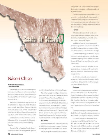 Su tierra: La extensión territorial de Nácori representa el 1.4% del territorio estatal y ocupa el vigésimo noveno lugar entre 72 municipios de la entidad. 94% de la superficie del territorio de Nácori
