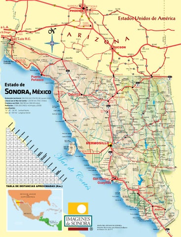 Sonora, MÊxico Extensión territorial: 184,934 km2 (114,912.66 square miles) Litoral con el Mar de CortÊs: 1,207.81 km (750.5 miles) Frontera con EUA: 588.199 km (365.49 miles) Población: 2’500,000 (INEGI-estimado a 2009) Localización: 32° 29’ - 26°14’ Latitud Norte, 108°26’ -105°02’ Longitud Oeste